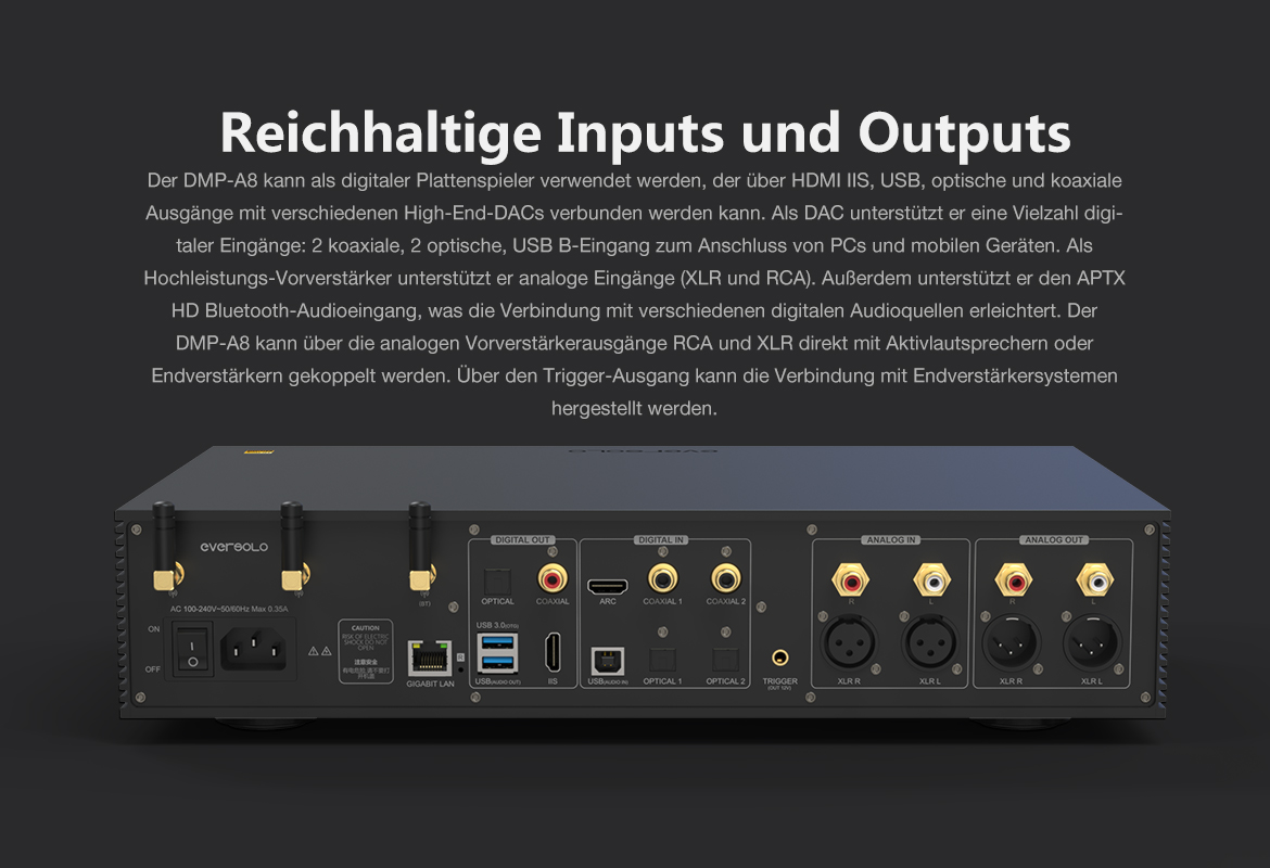 Ähm nein. Bitte einen eigenen Thread für den Eversolo A8 aufmachen.