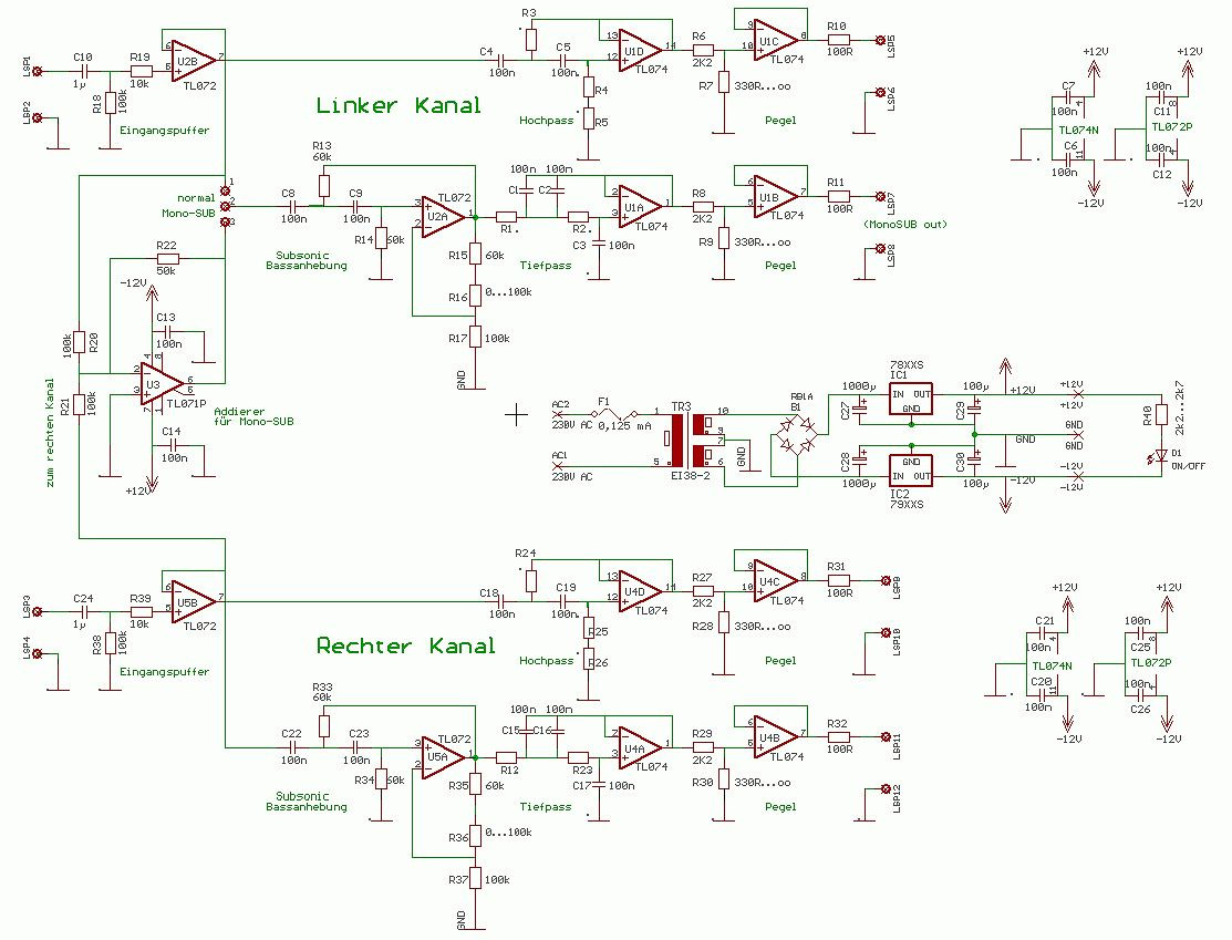 Ebenfalls kommt noch ein Aktiver Hochpass und Tiefpass in die Kiste, der HP wird schaltbar gemacht, falls der Sub noch mit dran kommt.