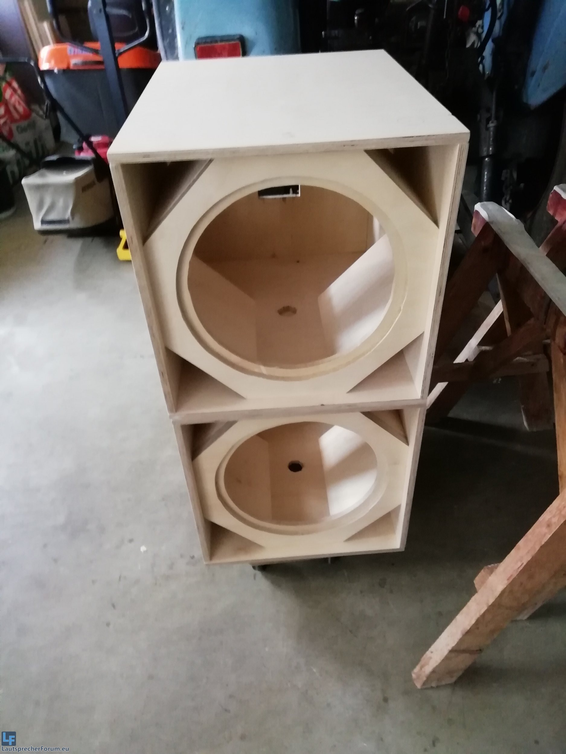 Später sollen es mindestens 8 doppel 15ner werden. (880€ für die Chassis). Wir werden sicher nur mit gut verstebter 19spanplatte bauen ohne Griffe und Gitter da wir das nicht benötigen, somit sind die paar m2 Holz auch nicht so kostenrelevant.