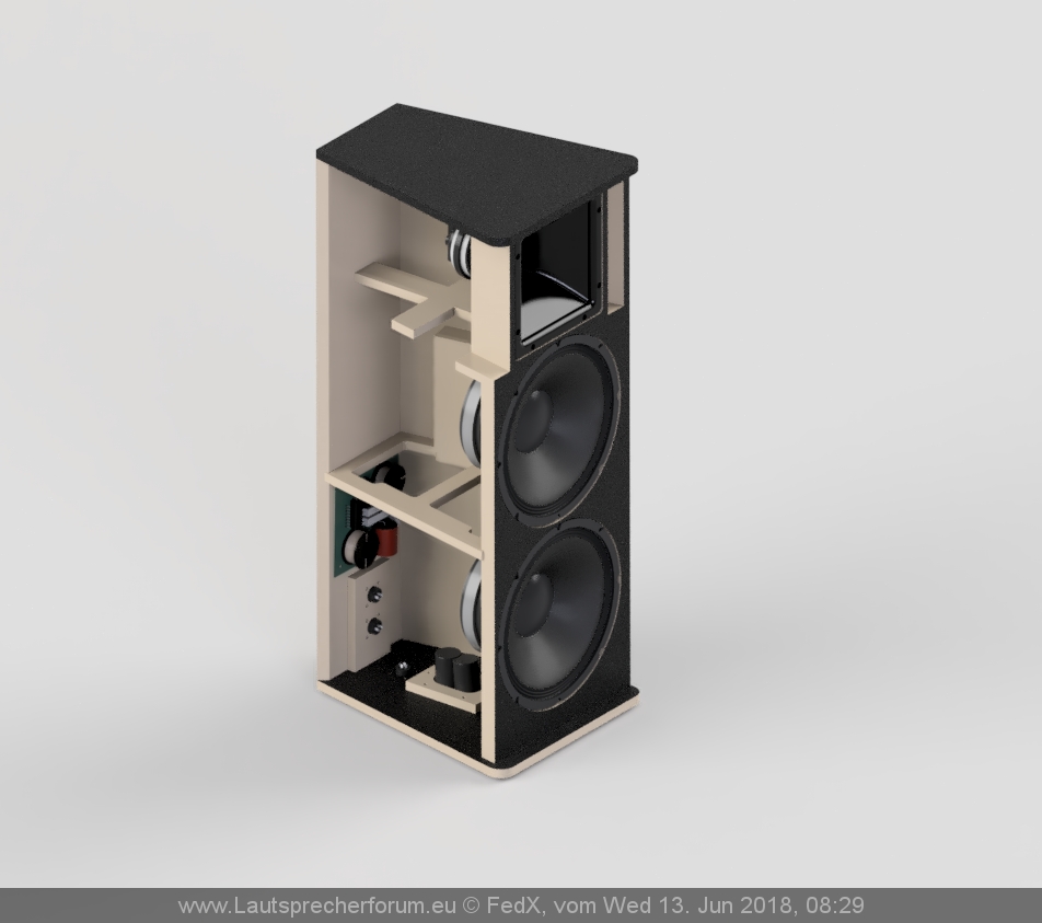 Beim rumprobieten würden 4 Eckports bei je 400W ungefähr mit 4 1850 bei je 200W mithalten wobei der Pegel bei grob 135dB läge und f3 beim BR bei 39Hz und beim 1850 Stack 42Hz. Wobei die Auslenkung beim Horn kaum über XMax steigt, währrend beim BR diese in deutlichen Bereichen raus ist. Gruppenlaufzeit beim Horn minimal weniger als beim BR inkl. Filter, aber auch welliger. Soweit zum simulieren