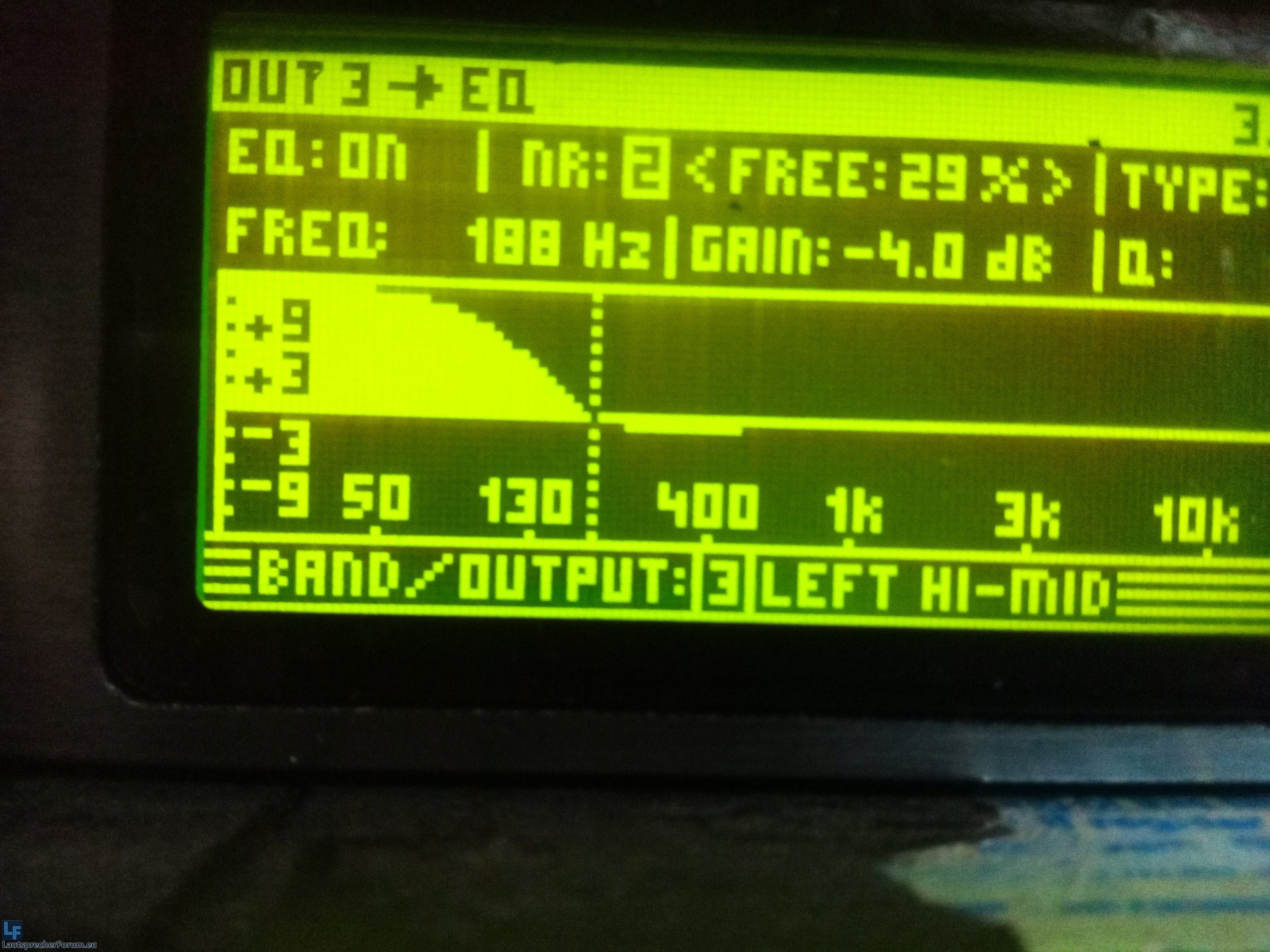 Ich habe die Einstellungen im DCX 2496 eingestellt bin mir jedoch nicht sicher ob ich alles korrekt verstanden habe von den einzustellenden Parametern. Ich habe nochmal Fotos meiner EQ-Einstellungen angehangen.