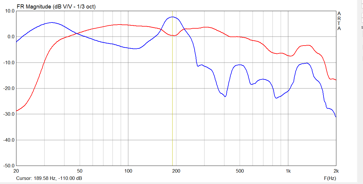 Auch hier bis 200hz ziemlich linear das ganze. Nur halt das es unter 40Hz früher abfällt.