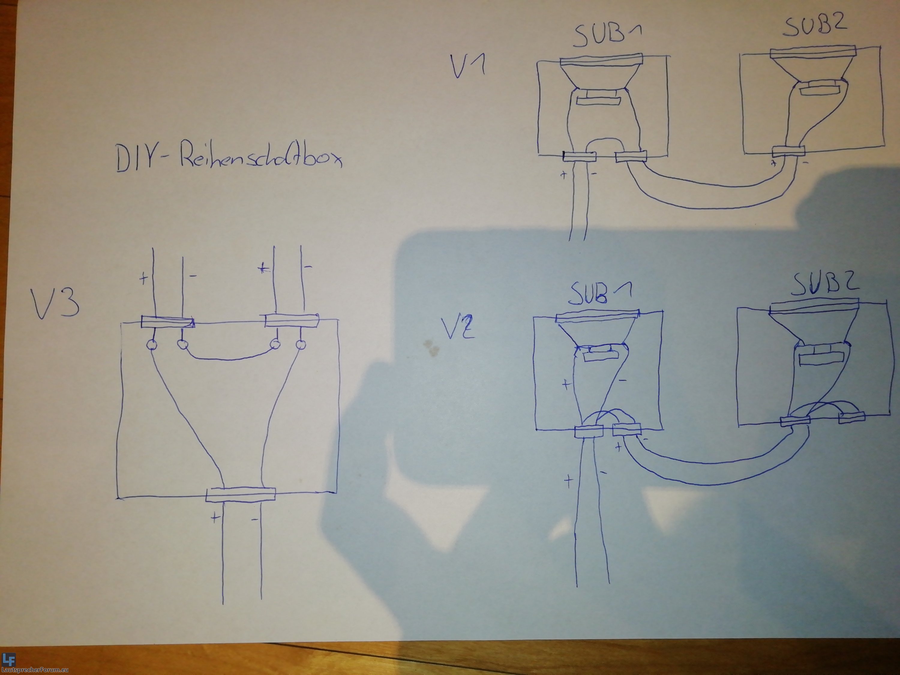 Mit welcher Schaltung? Das externe Kästchen aus dem Bild nutzt Du ja nur, wenn Du zwei separate Subwoofer in Reihe schalten möchtest. Die als Text beschriebene interne Verkabelung gilt natürlich nur bei Doppel-Subwoofern.