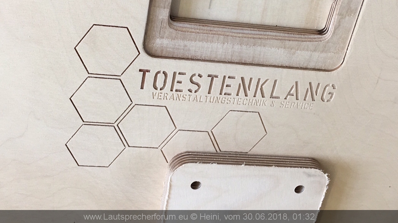 Auch der Logoschriftzug ist nicht 100% geworden. 1mm Fräserdurchmesser ist dann doch zu gering und die Buchstaben sind teilweise mit Farbe vollgelaufen.