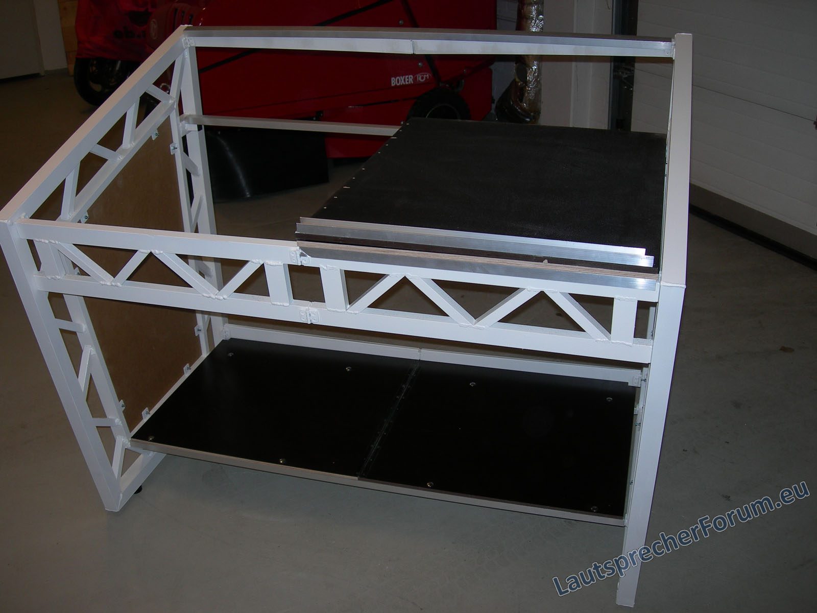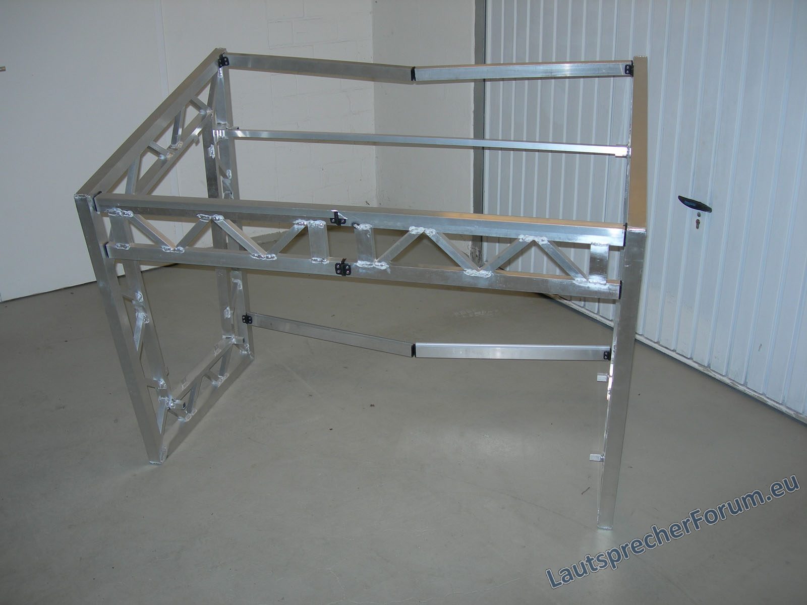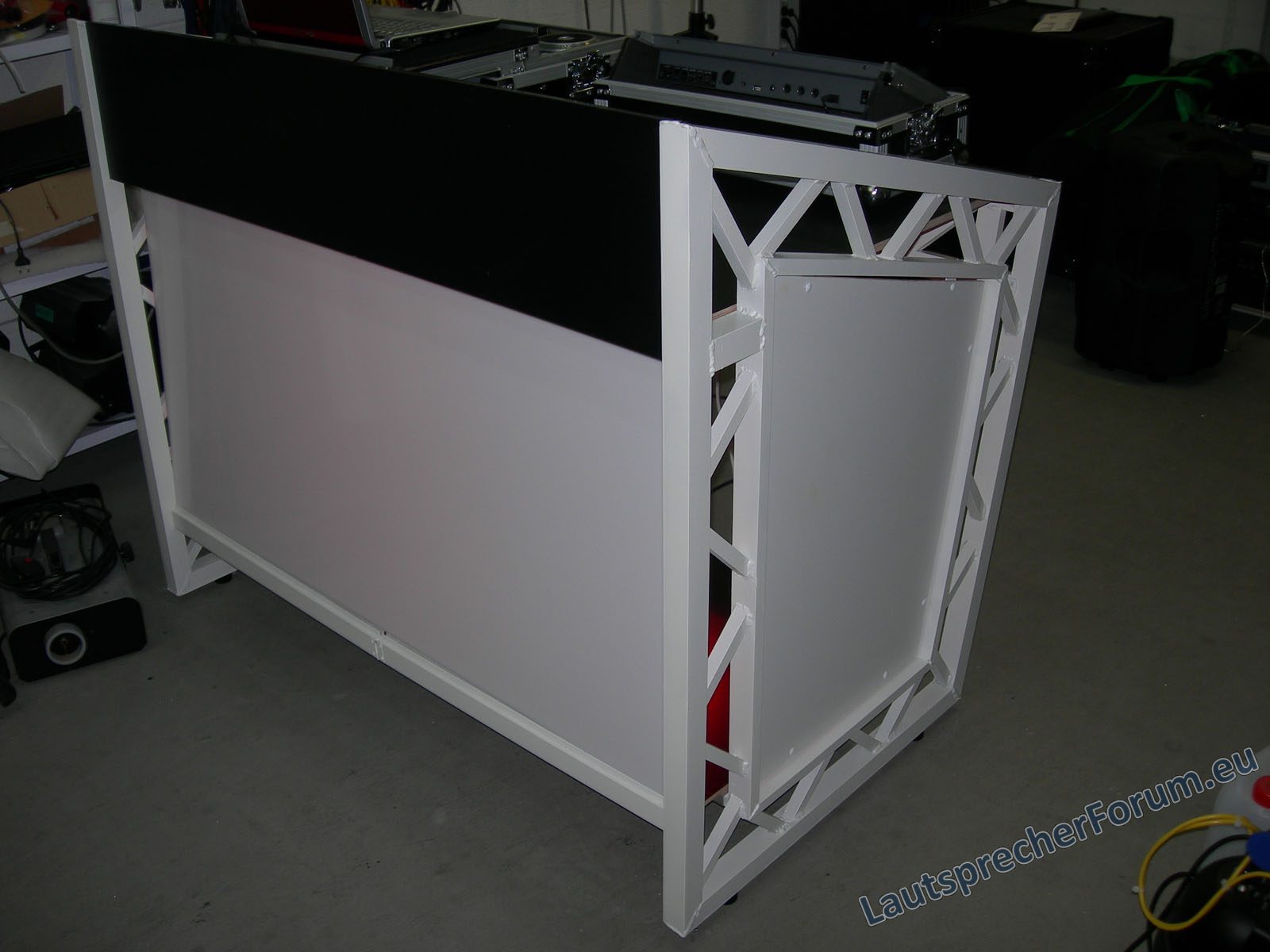 So, hier kommt neues von DJ-Stand. Wie man sieht ist er fast fertig. Die Platten sind zusammen klappbar, weil man sie einfach besser Händeln kann. Fehlen tut noch eine Plexiglasscheibe