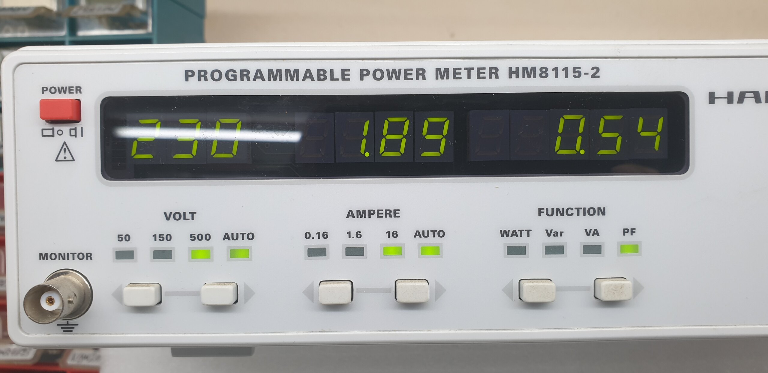 Offensichtlich hat die Endstufe keine aktive PFC, jedenfalls spricht der Leistungsfaktor von nur 0,54 dagegen.