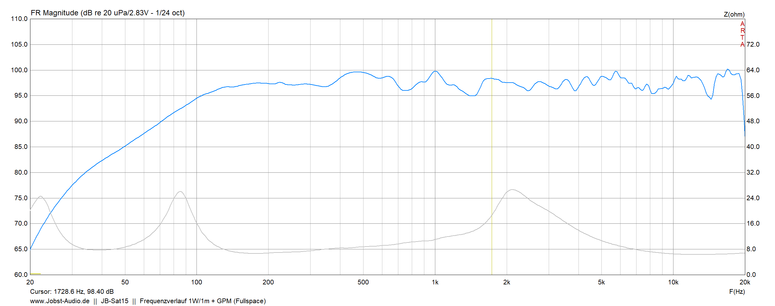Die 12" Version vom Chassis (12 E2,5 CS) kennt ihr bereits aus der JB-Sat12, hier gibt's allerdings eine moderne PDF mit aktuelleren Messungen und einer Wertung mit 300W rms,