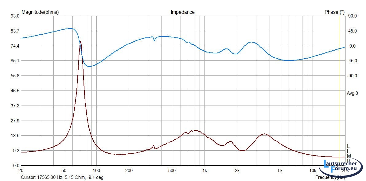 Messung wieder im unbedämpften CB Gehäuse, deswegen der etwas unsaubere Impedanzgang.