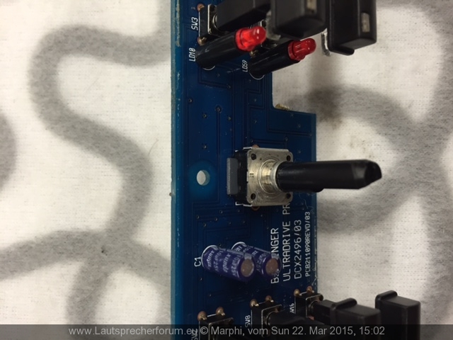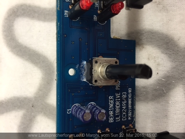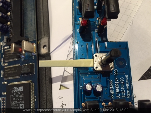 Testweise hab ich dann einen gefalteten PostIt drunter geklemmt und siehe da, das Poti hat wieder wunderbar funktioniert. So konnte das natürlich nicht bleiben, also habe ich den PostIt durch ein kleines flaches Plastikplättchen ersetzt. Jetzt funktioniert alles wieder perfekt. War also eine ziemlich simple Reparatur.