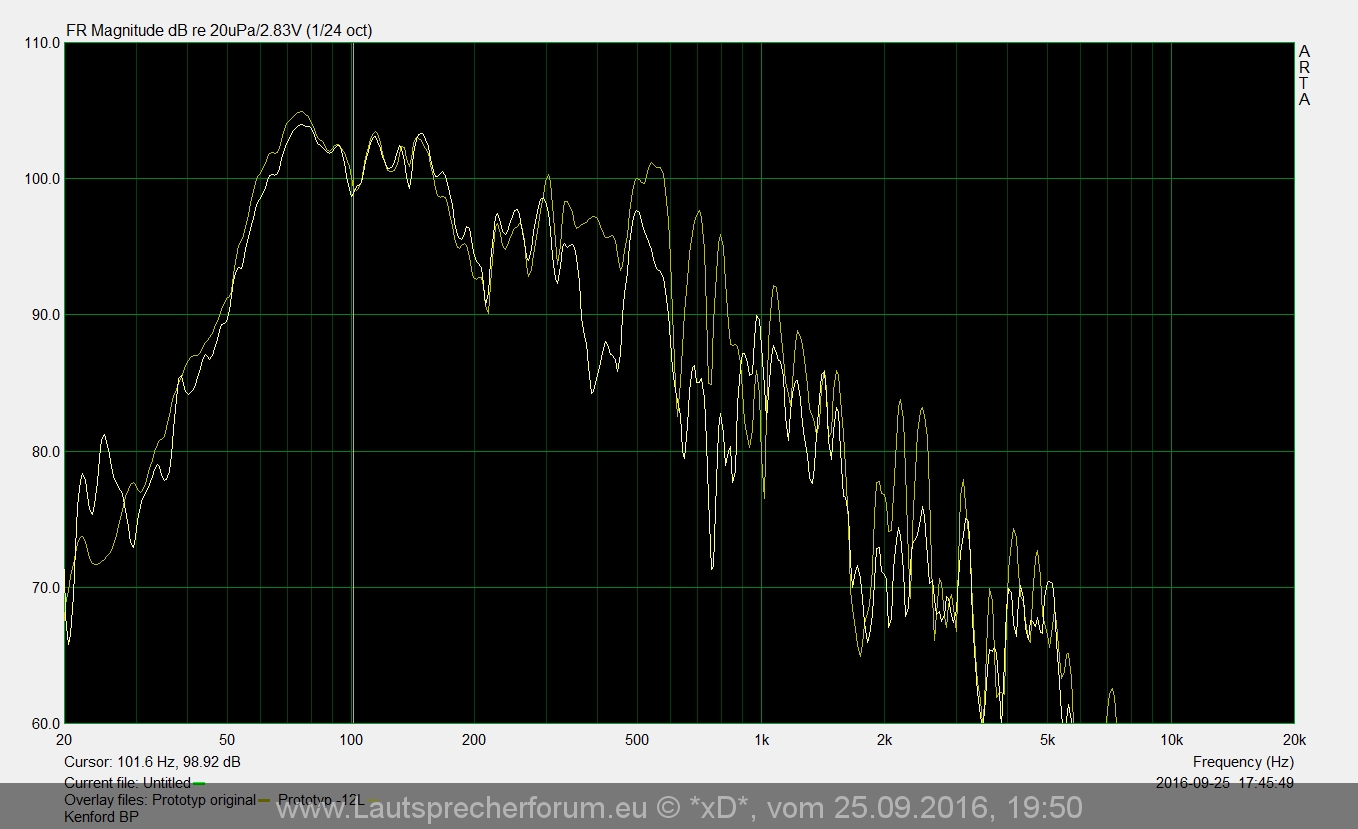 Die große Vorkammer und der große Port bringen also tatsächlich sehr ordentlich Pegel, ein BR dürfte schätzungsweise etwa 3-5db leiser sein (dafür natürlich auch ein paar Ecken kleiner und mit mehr Tiefgang). Für 0815-Mucke ist der Tiefgang aber absolut ausreichend.