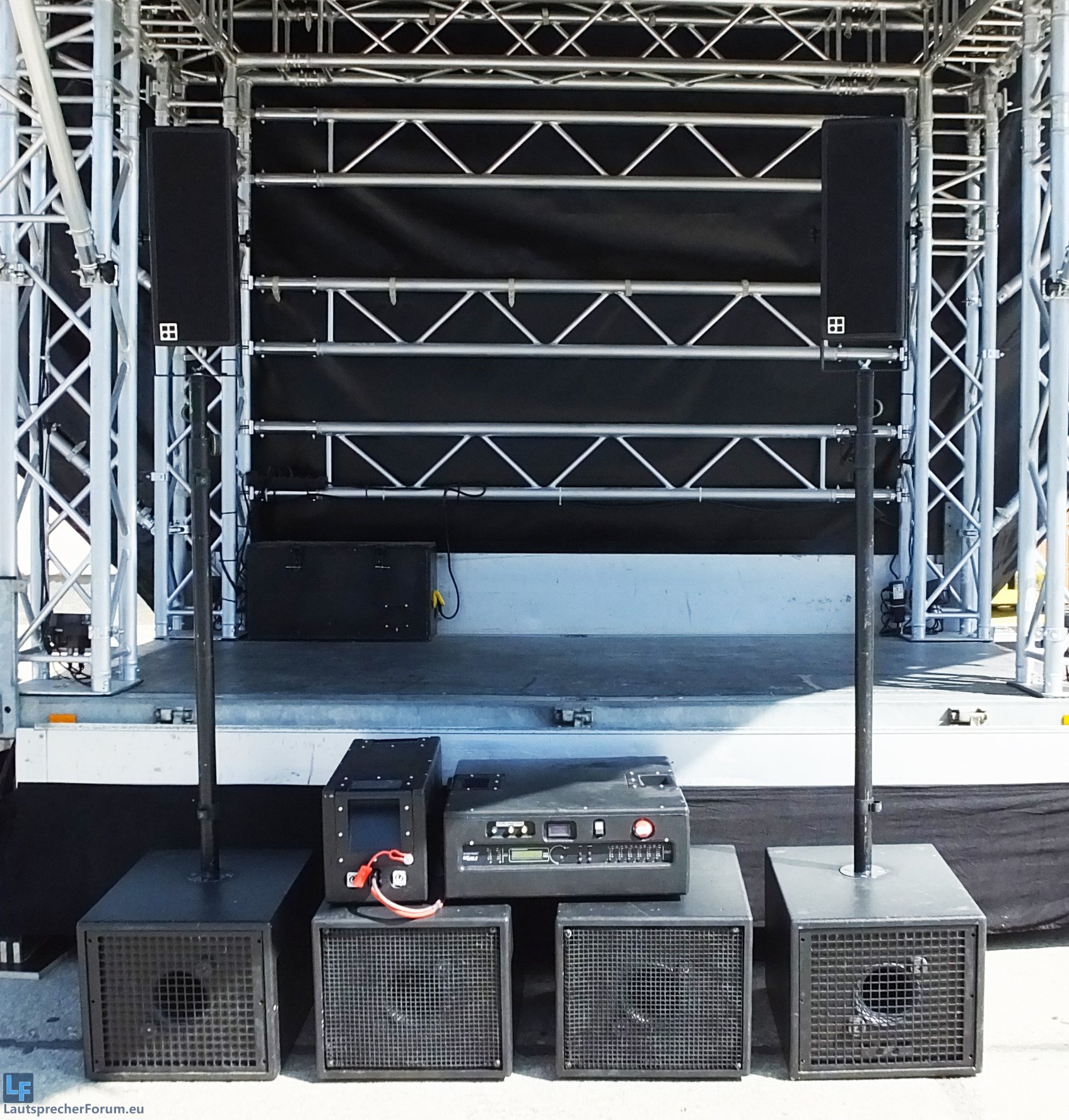 Ich habe erstmal zwei OHM HGW 12 und 2 d&b E1 Topteile dafür genommen. Das ist klanglich und auf die Größe bezogen vollkommen in Ordnung!