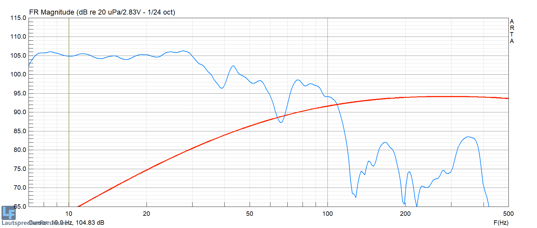darüber haben wir Berg und Tal durch Stehwellen. Oberhalb 100HZ kommt dann kaum noch was, egal ob im kleinen Gold, oder im offenen Kombi.