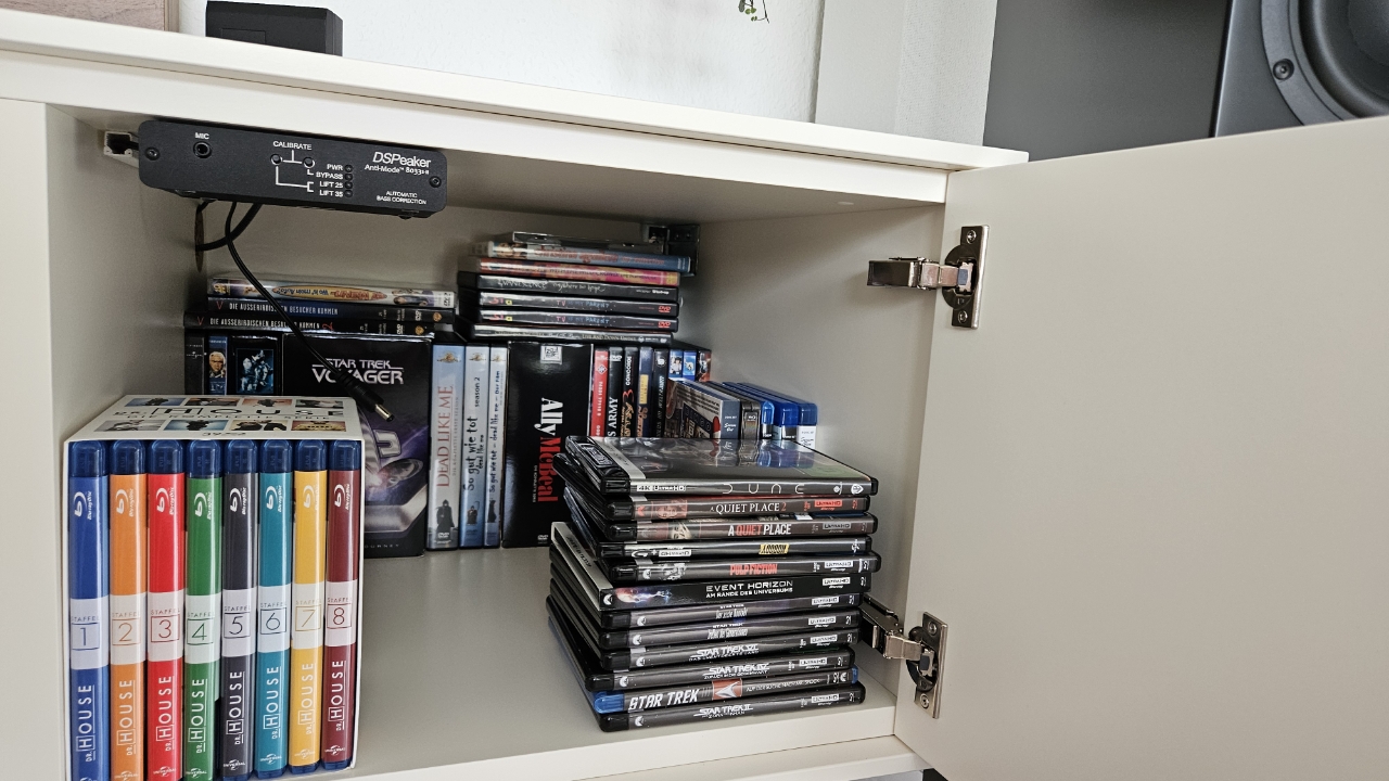 Wenn alle Stricke reißen und Dirac ART nichts wird, werde ich das wieder, aber diesmal mit zwei größeren Subwoofern machen. Nur habe ich näher am Raumzentrum Frequenzlöcher im Subwoofer, was sich negativ auf den eigentlichen Klang auswirkt. In der Raumecke hingegen klingt der Sub viel homogener und deckt alle Frequenzen optimal ab, er klingt aber auch langweiliger.