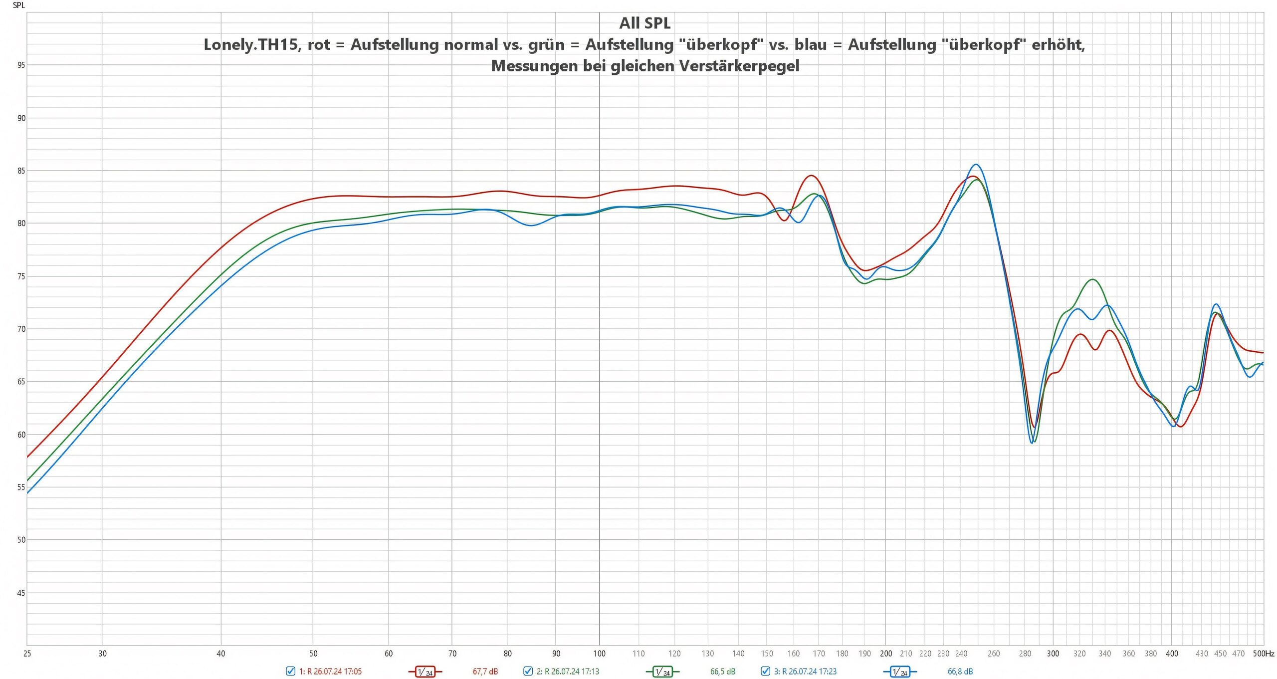 Gemessen habe ich mein Lonely.TH15, wie immer, draußen in meinem Innenhof auf dem Boden stehend, Messmikro mitte Hornmund.