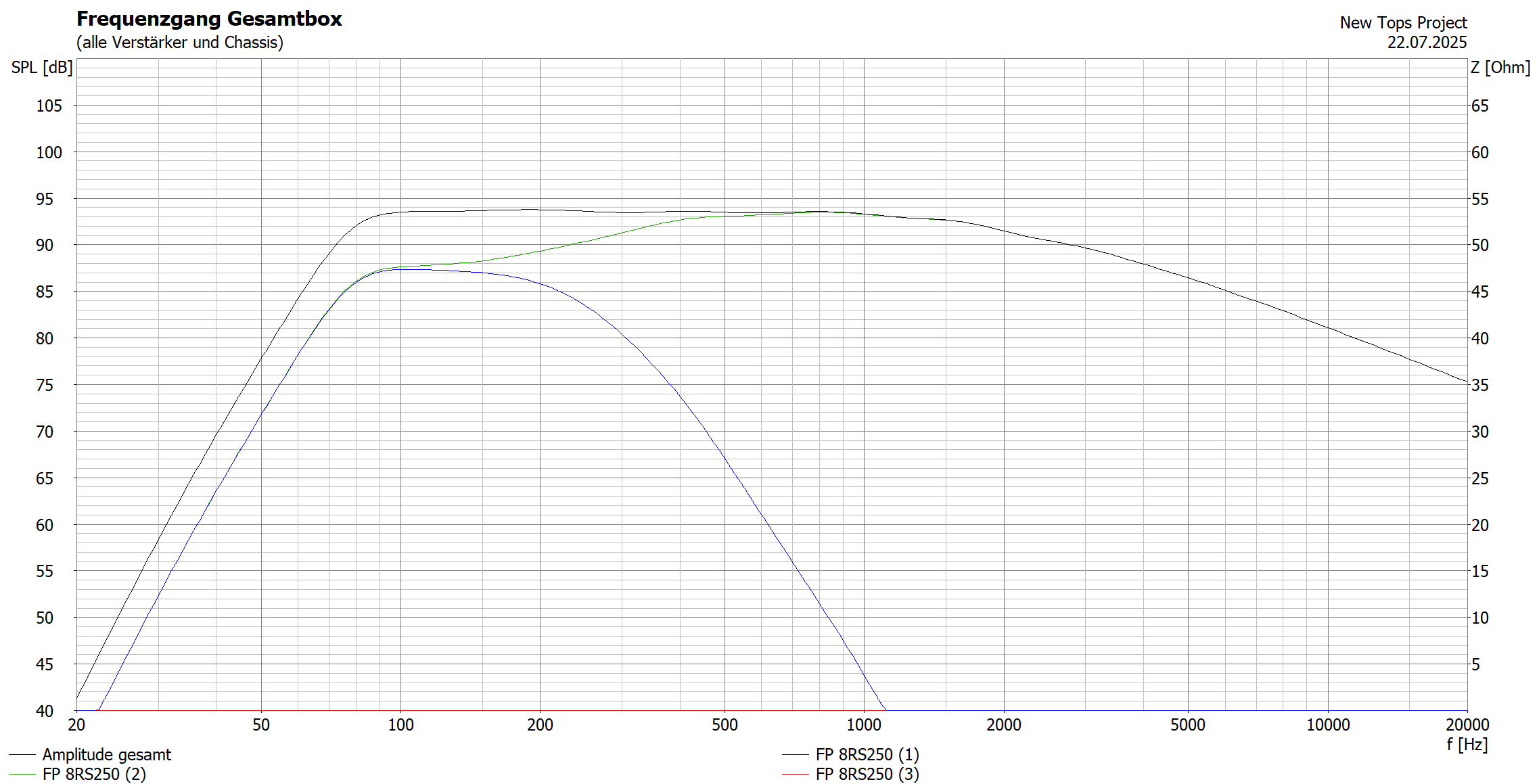 - Hochpass 38 Hz BW12, zum Schutz der TT vor zu hoher Auslenkung bei niedrigen Frequenzen.