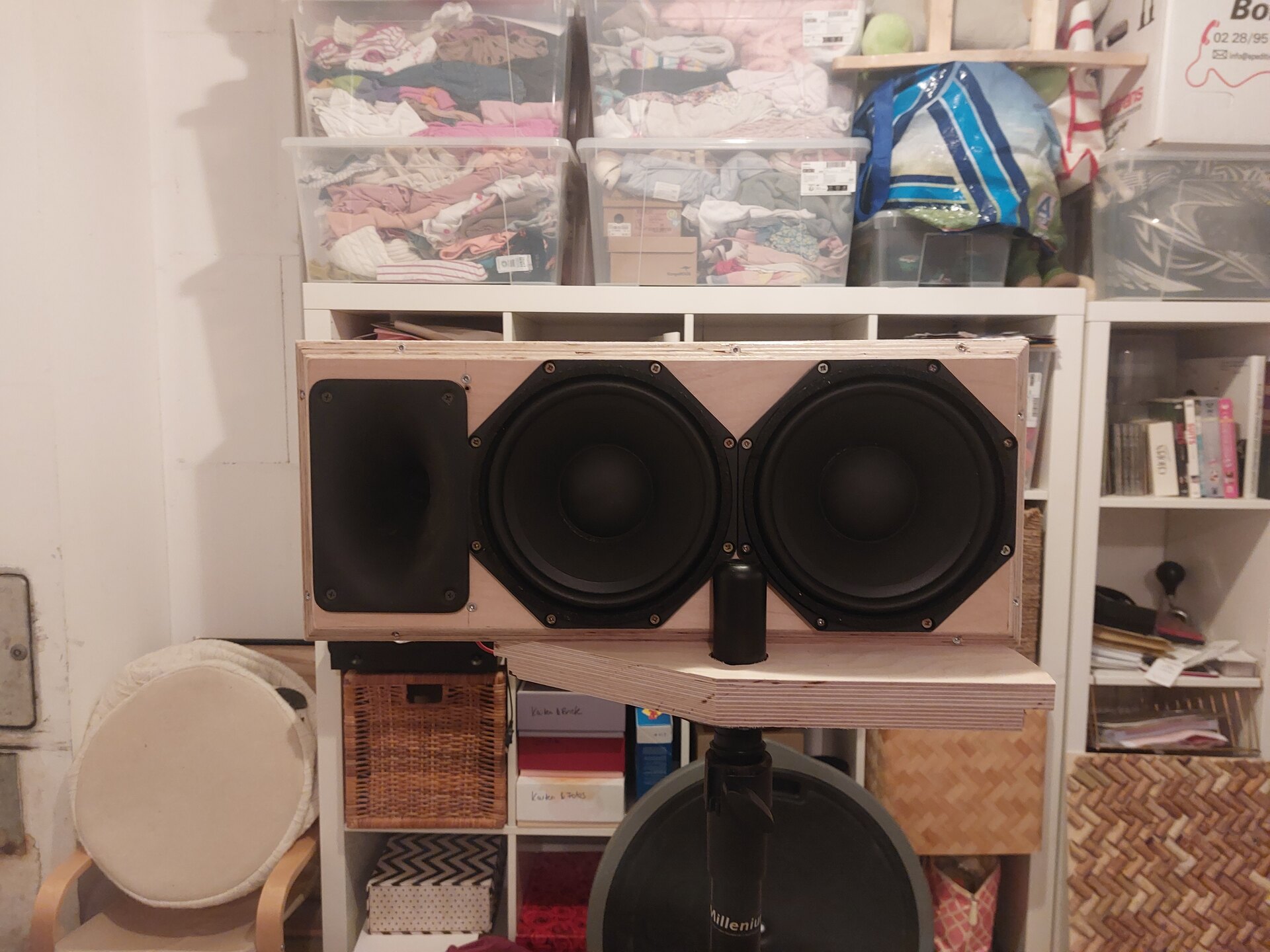Eine wichtige Randbedingung ist bei diesem Projekt, dass ich (nur) diese Komponenten zuhause rumliegen habe, und daher genau damit das bestmögliche für die Use-Cases realisieren möchte. Nicht unbedingt, um nachher das allerbeste Produkt für diesen Anwendungsfall zu haben (dann könnte ich auch Meyer Sound Ultra-X40, Voice-Acoustic Score 8, Seeburg X6, etc. kaufen), sondern um aus der Aktion möglichst viel im Bezug auf Entwicklung und Messen zu lernen und Erfahrung im Boxenbau zu sammeln.
