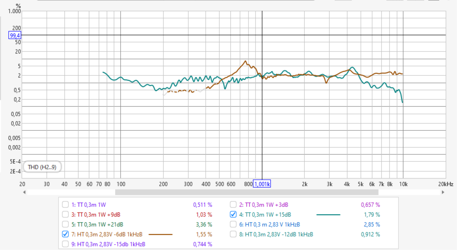Warum hast Du alle Schallquellen zusammen gemessen und nicht HT und TT einzeln, so kann man ja gar nicht erkennen welcher Weg Klirr produziert?