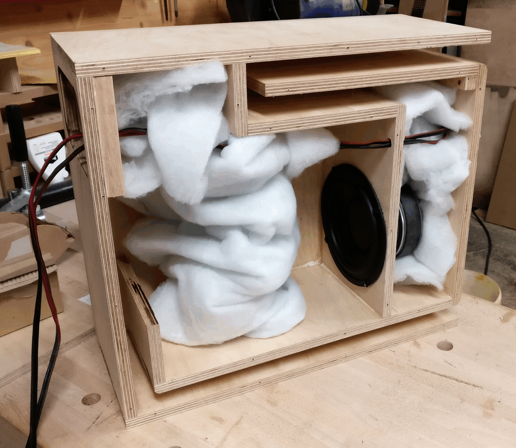 Holla, kühnes Unterfangen. Könnte man einen Bandpassaufbau hier umsetzen, indem man den Woofer in eine schräg gestellte Trennwand verbaut um Vertikalraum zu sparen? Oder ist man dann einfach viel zu nah an den Außenwänden mit dem Woofer? Smart wäre natürlich, dass dadurch der Woofer ganz versteckt wäre. Leidet darunter aber die "Knackigkeit"?