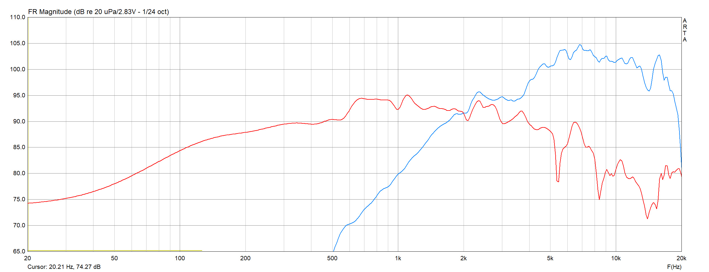 Warum so hoch? Weil es ein reines Topteil ist und somit ab 100Hz genug Pegel liefern soll, sonst wird der Sound out-of-the-box einfach zu dünn