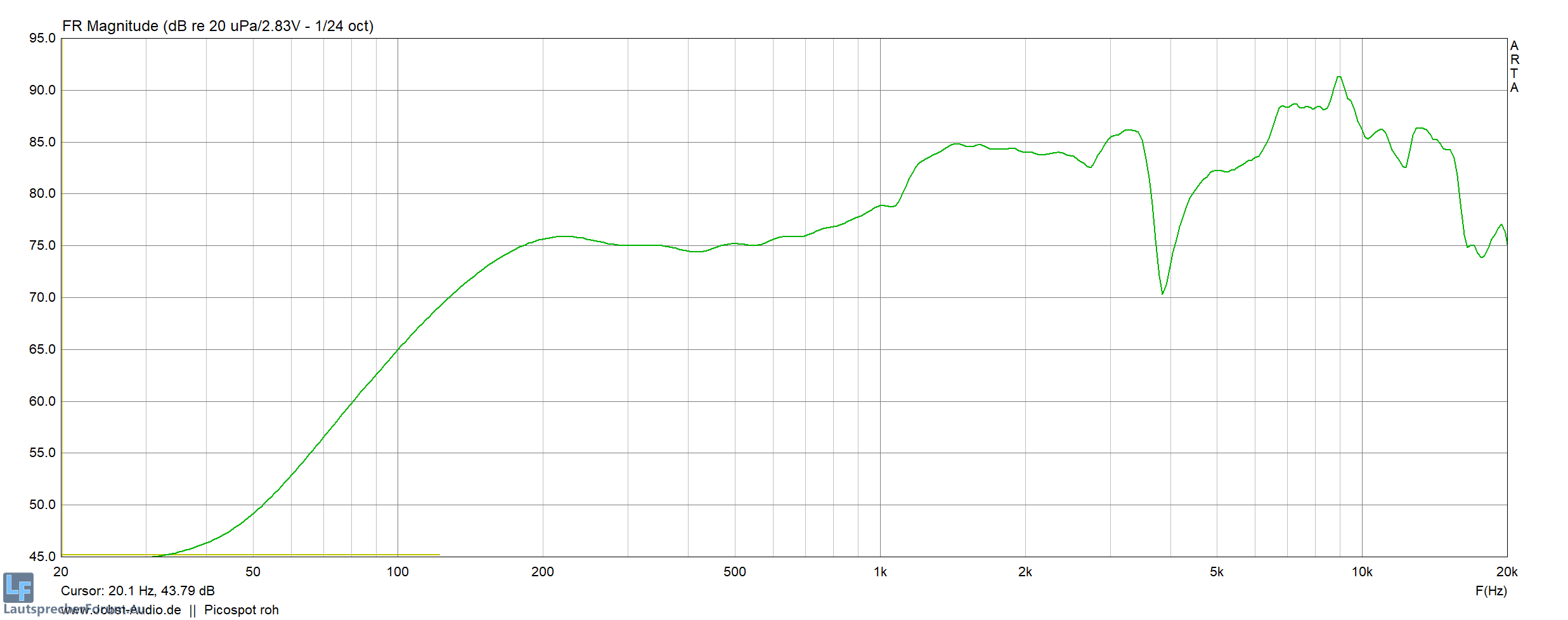 So ein roher 16 Ohm Picospot (hier ein Nachbau mit Faital, der dem Original entsprechen sollte?) schaut so aus: