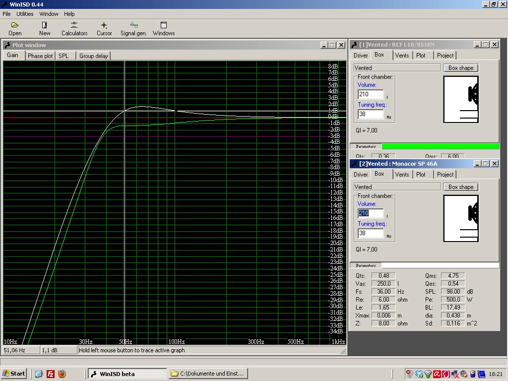 habe den vorgeschlagenen Monacor Treiber und auch den RCF in WinISD Simuliert. klar ist das ganze nur eine Anlehnung ans original, aber ich bin ganz zufrieden mit dem was rauskommt. die Chassis hatte ich schon seit 5 Jahren rumliegen...