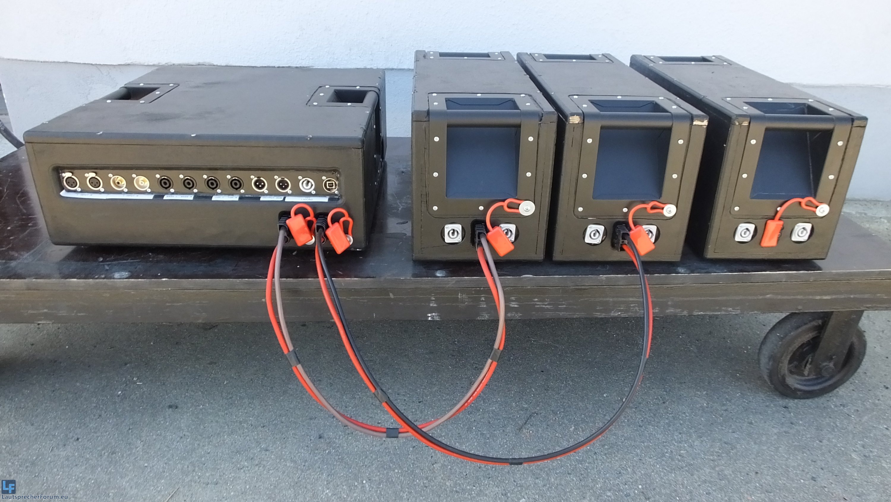 - Akku 12V 18AH (die Grundstromversorgung. Der Verstärker kann separate mittels Akkupacks zusätzlich versorgt werden)