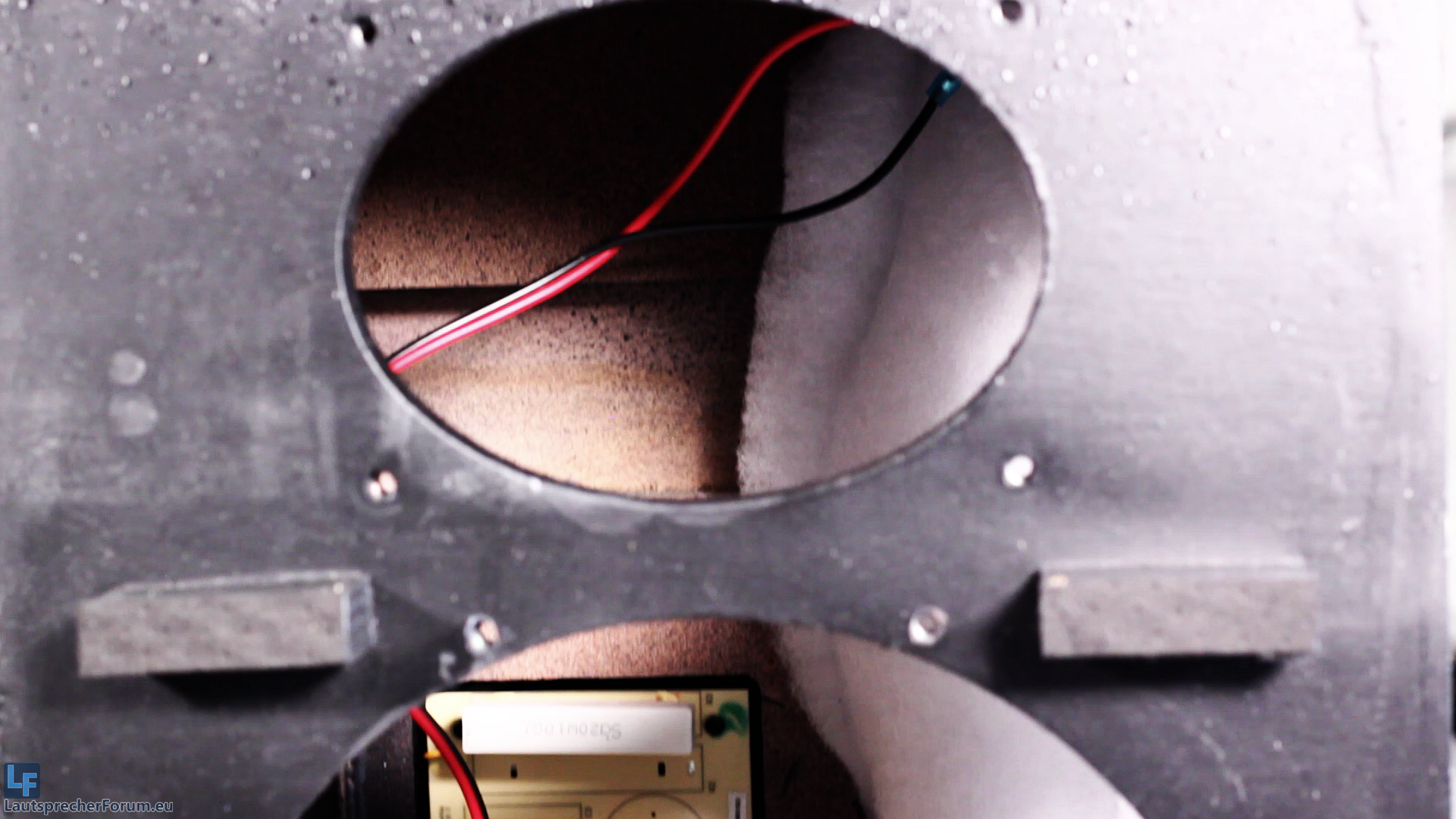 Wie leider so oft in dieser Preisklasse, wurde massiv am Bedämpfungsmaterial gespart, wir finden lediglich einen lieblos reingeklatschten Fetzen Polyesterflies.