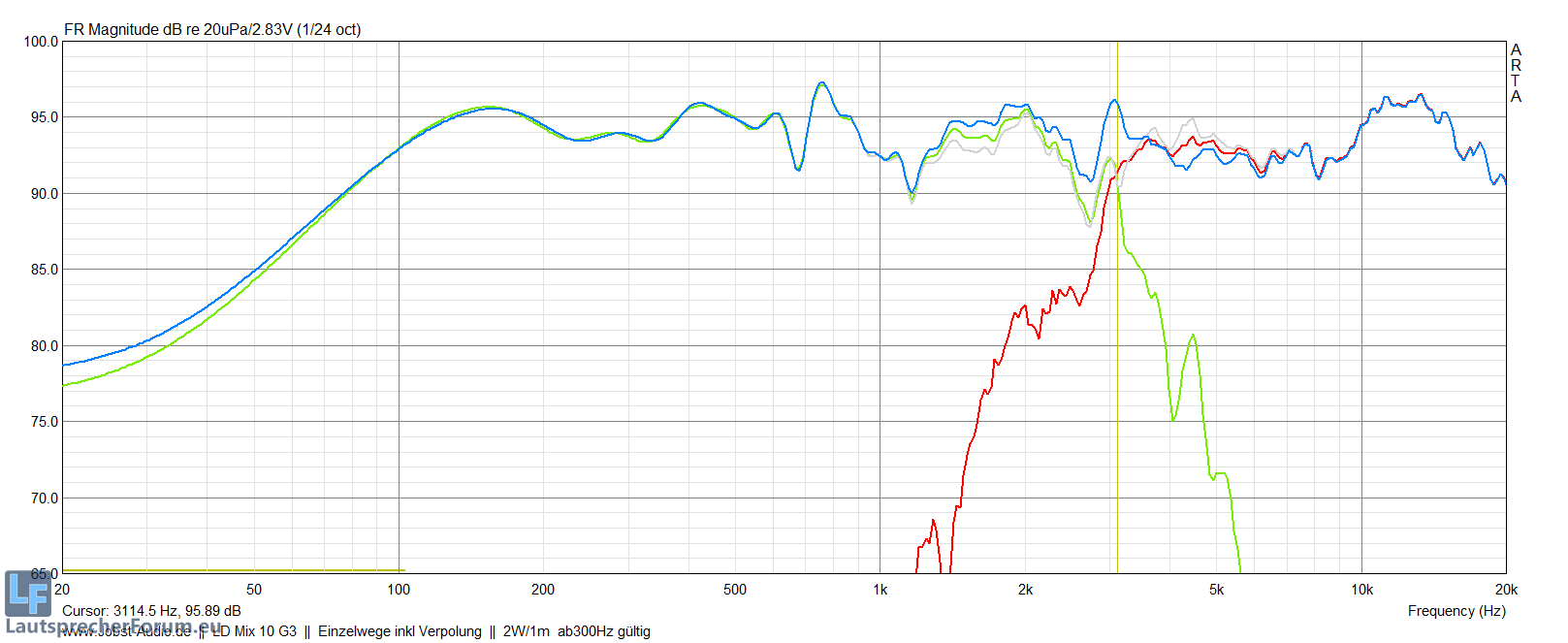 Ebenfalls haben wir durch dir recht hohe XO von 3,1 kHz noch die obere Reso vom TMT voll im Frequenzverlauf.