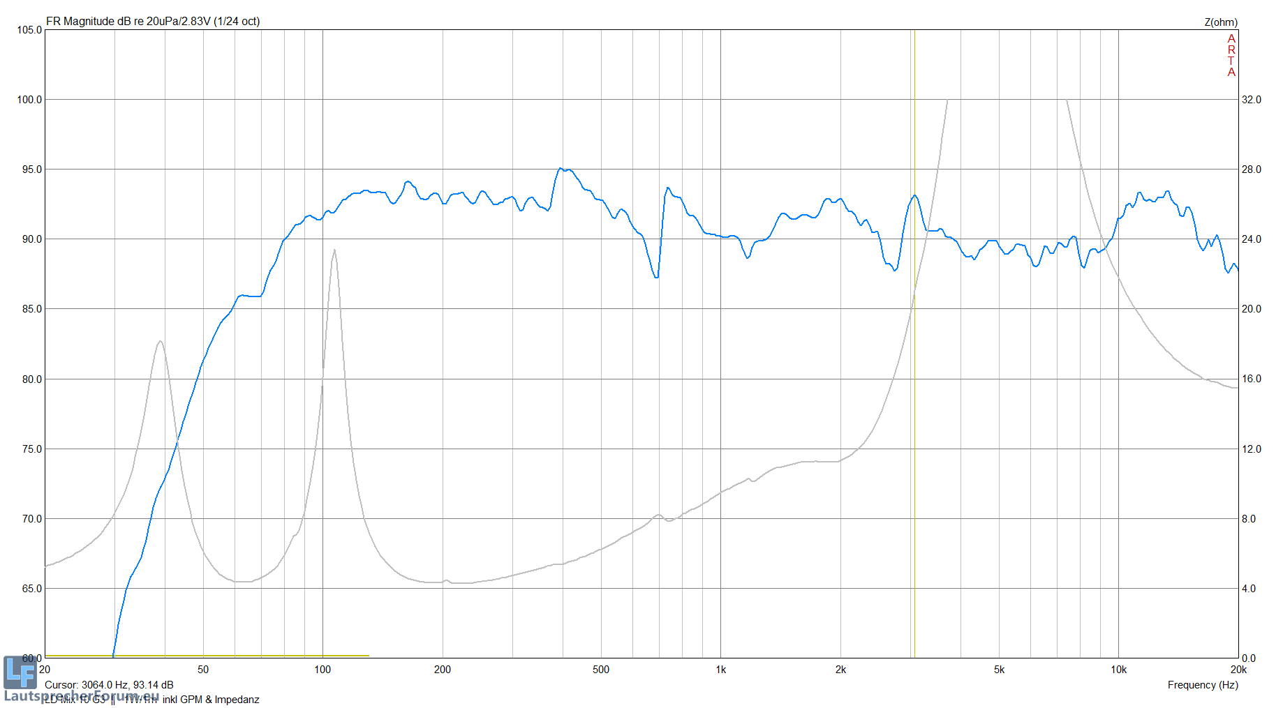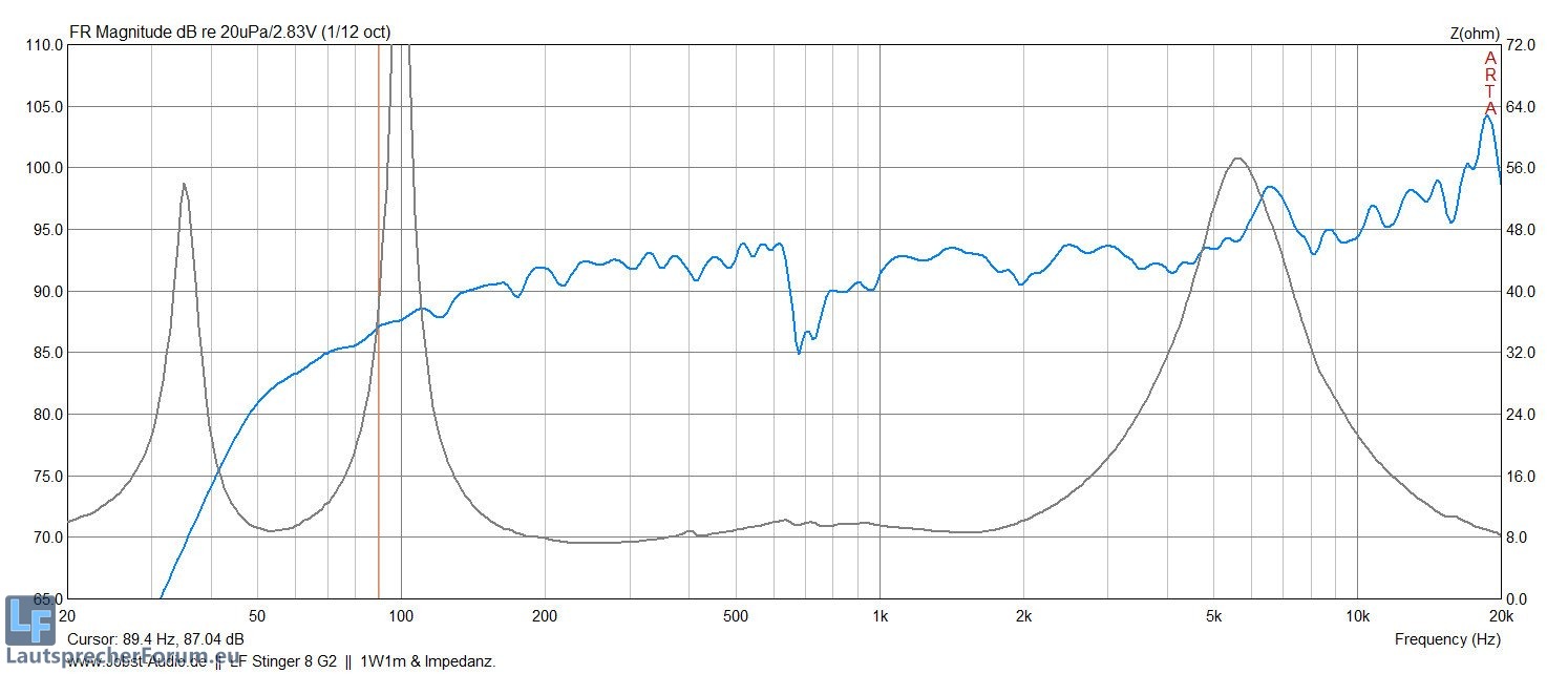 Die Impedanz ist also einwandfrei und voll in der Norm mit nominellen 4 Ohm und Rmin 3,60 Ohm.