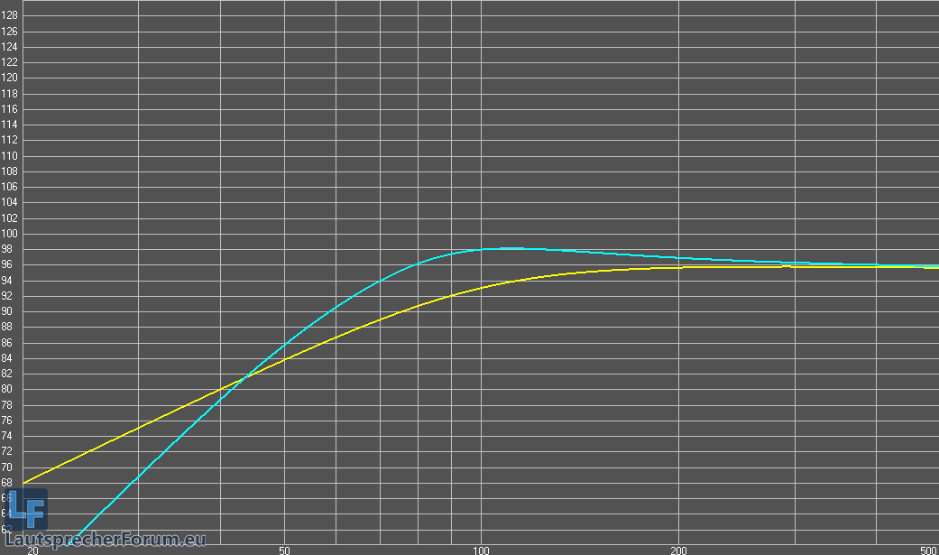 Die Simu liegt genau auf 95dB, wenn das Chassis ab ~200Hz ebenfalls 95dB liefert (gemessen), hättest du in der Praxis untenrum einen Abfall um circa 3dB,