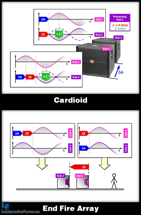 "Nachteil hierbei ist, dass der Impuls des nach hinten abstrahlenden Subs um eine Periode der Wellenlänge verschoben ist" => Du meinst eine halbe Periode, oder?