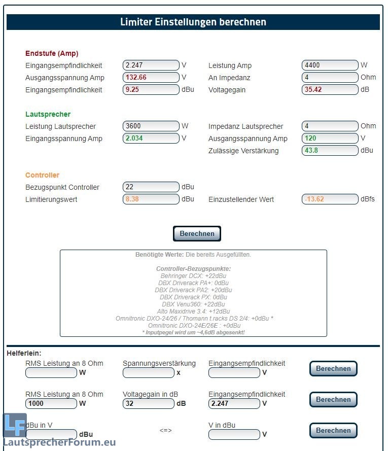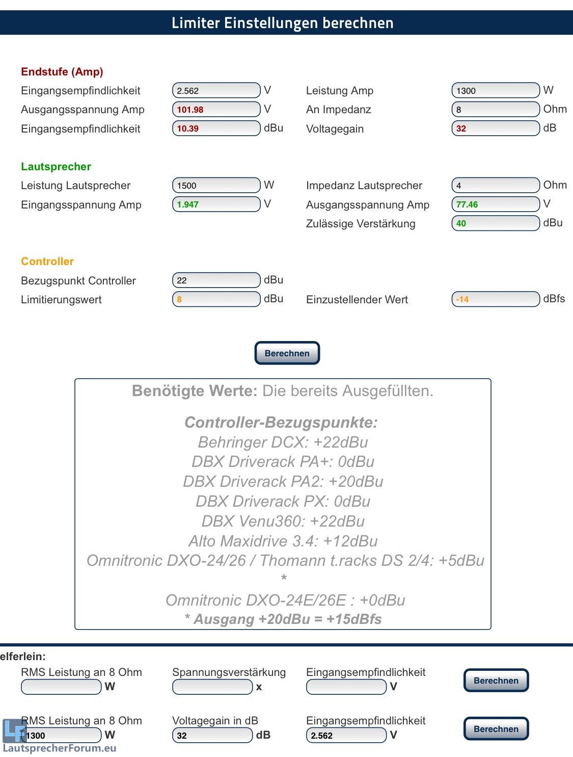 Beim rumsuchen im Internet bin ich auf das "Limiter berechnen" Tool von Jobsti gestoßen. Allerdings fehlen mir ein paar Werte bzw. ich bin mir nicht ganz sicher was ich dort eingeben muss.
