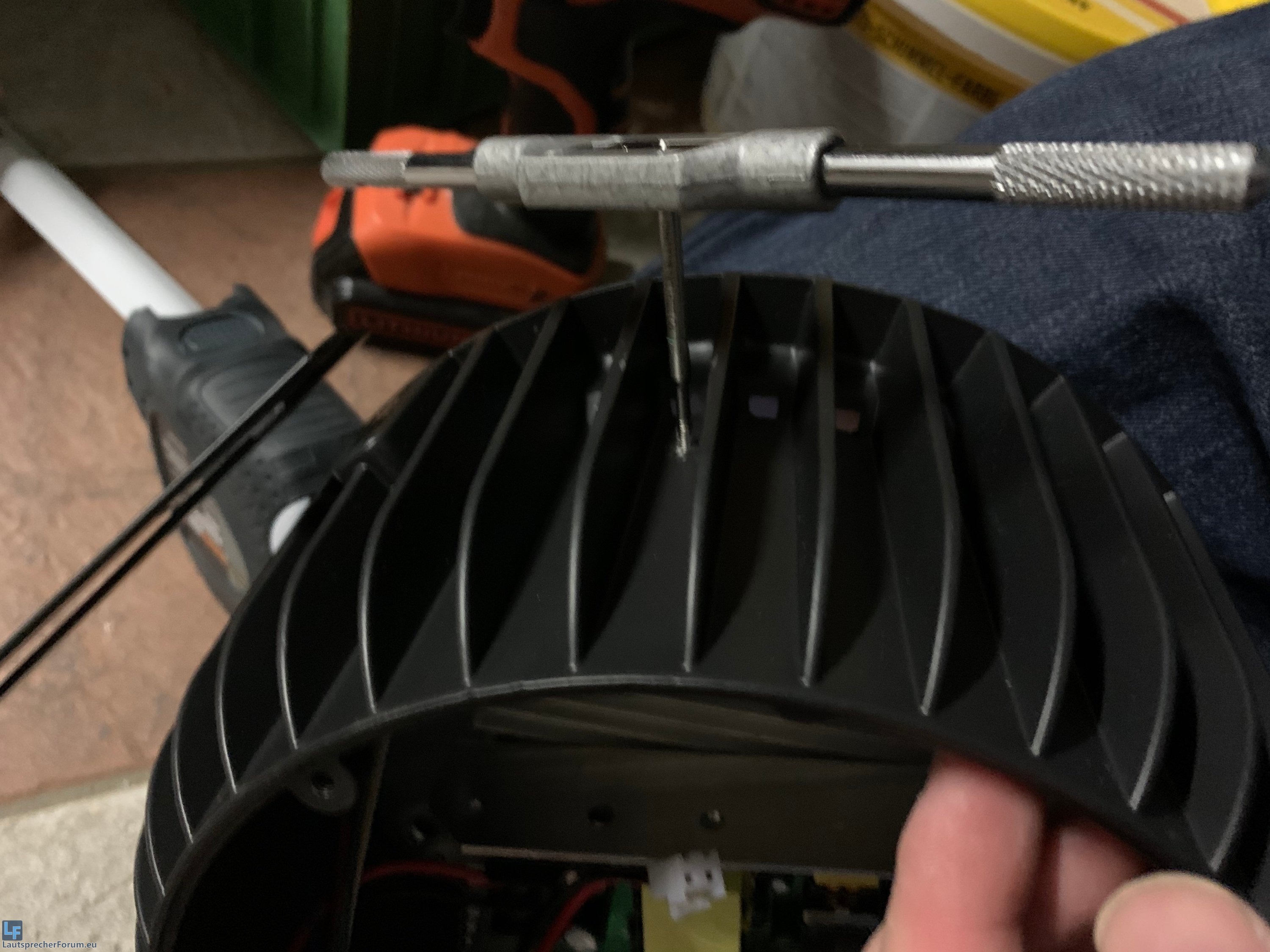JoPeMUC hat geschrieben: 17. Mär 2020 13:58 Falls auf der Rückseite genug Platz ist, kann man ja ein Loch für eine Öse mit Gewinde bohren und innen mit einer Mutter kontern