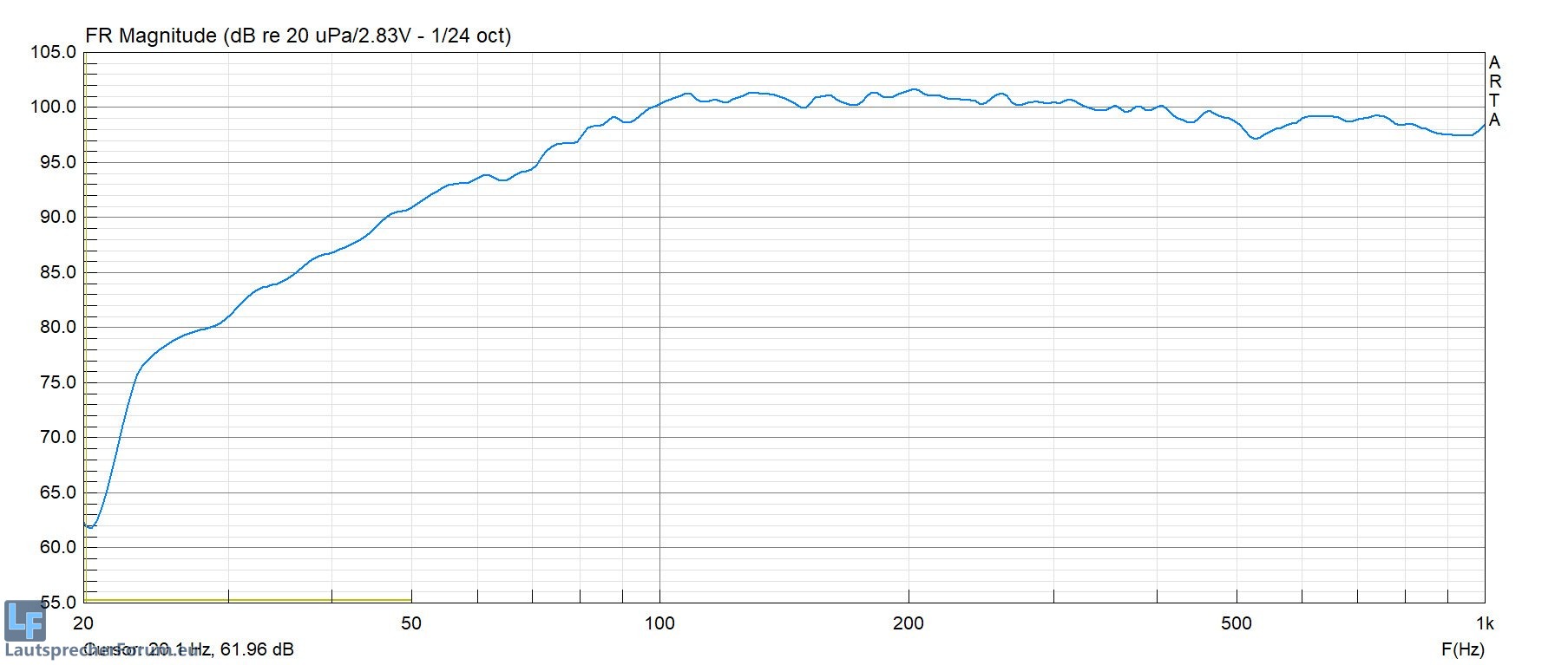 Die Open ist mehr eine Hifi-Box mit PA-Genen und kann über Bässen ausreichend laut für kleine bis mittlere Parties. Ob Absicht oder nicht, eine Messung des Tiefganges ist da auch nur weniger wirklich interessant, wenn das für "laut" vorwärts gehen muss, denn laut und tief kann sie definitiv nicht.