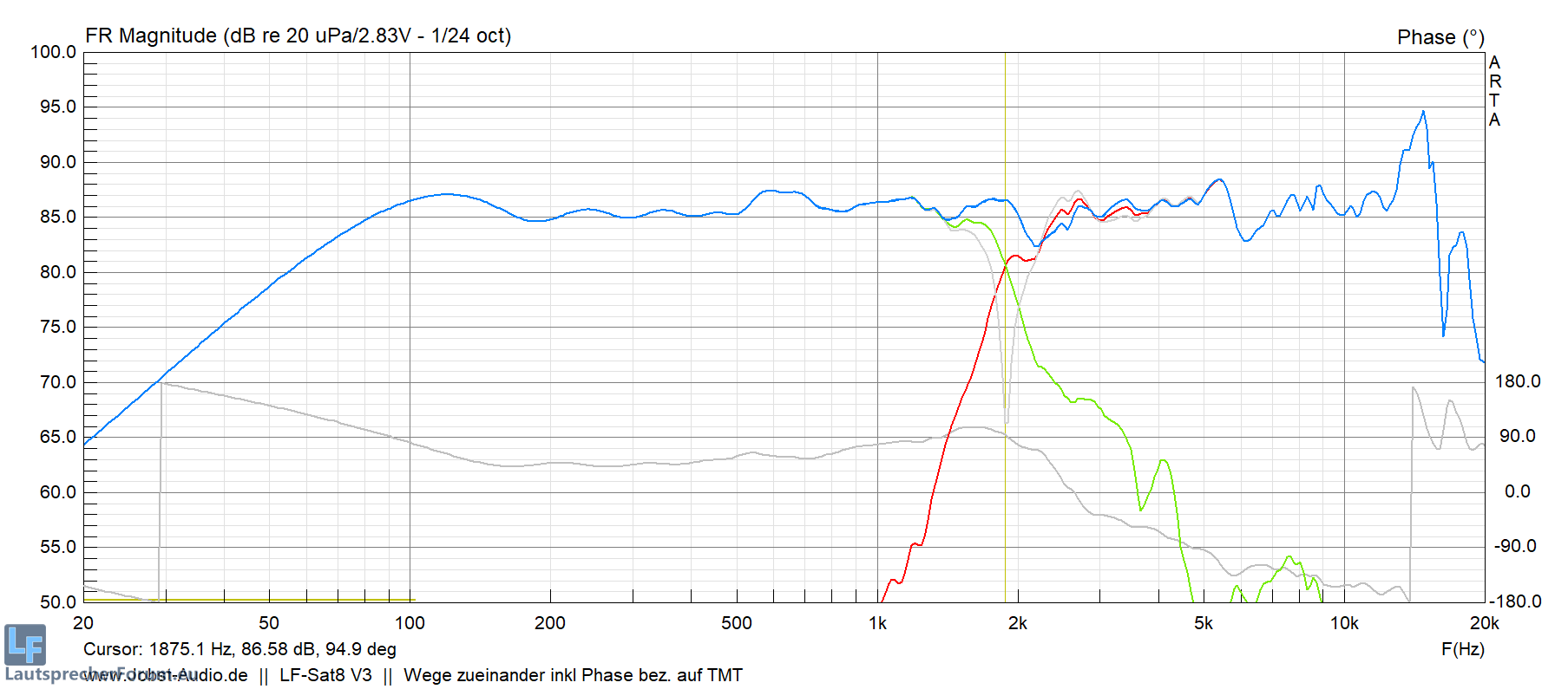 Für das kleine Horn wäre eine höhere XO im Bereich 3-4kHz zwar schöner gewesen, aber wir musste leider tiefer gehen,
