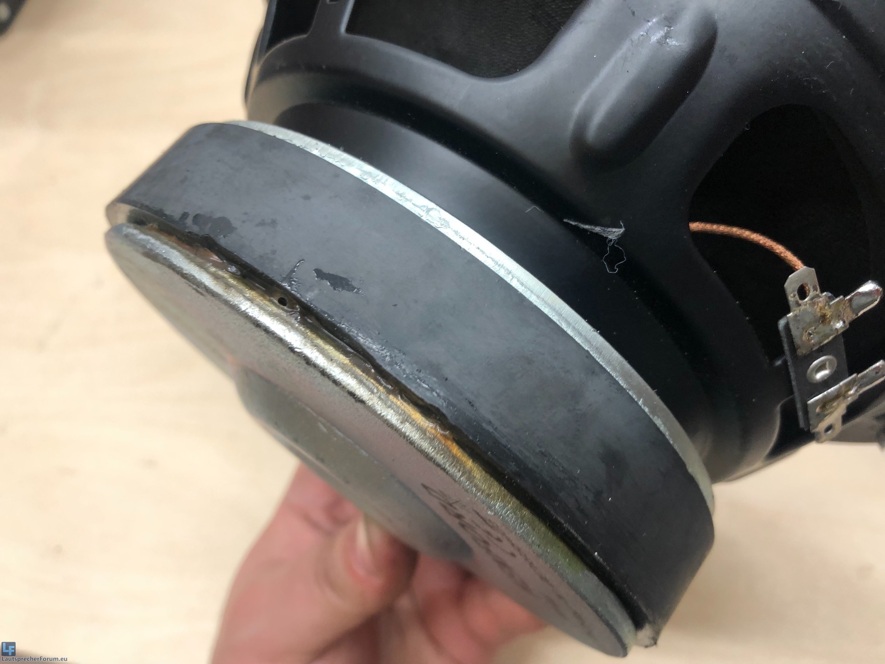somit musste relativ tief getrennt werden. Der Hochtöner wird dafür untenrum angeschubst,