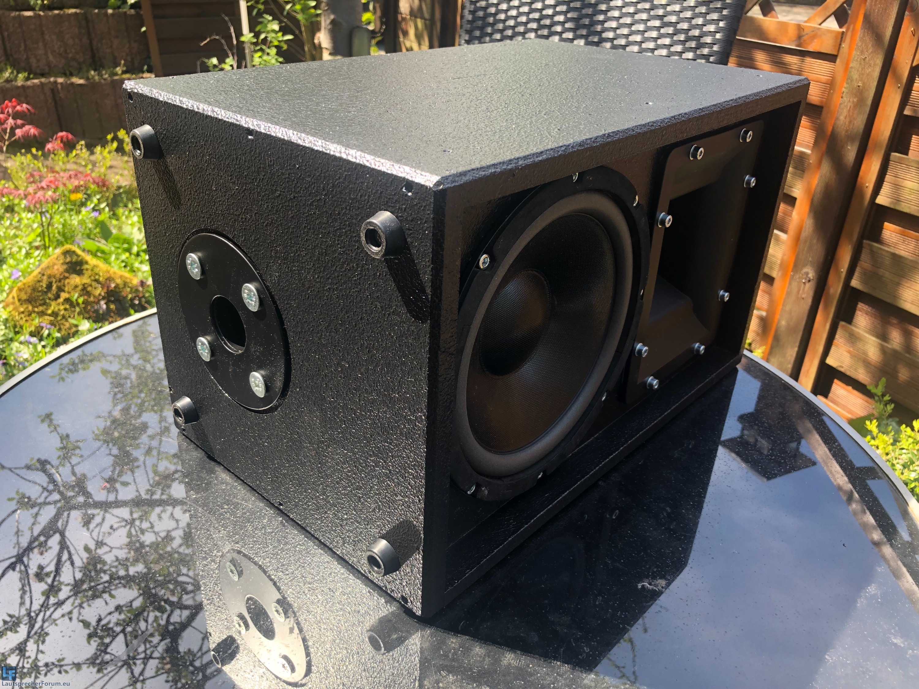 Die Kiste ist klanglich die fetteste LF-Sat8 geworden, klingt schön rund und bei nicht zu hohem Pegel auch nicht zu direkt, eigentlich schön angenehm