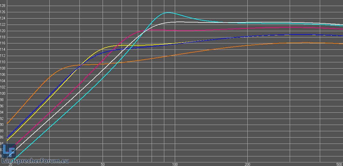"Verschwendung" wäre aber bezüglich des Tiefgangs, so getrennt, dass man einen flachen Verlauf von 31Hz-128Hz (-3dB) erhält,