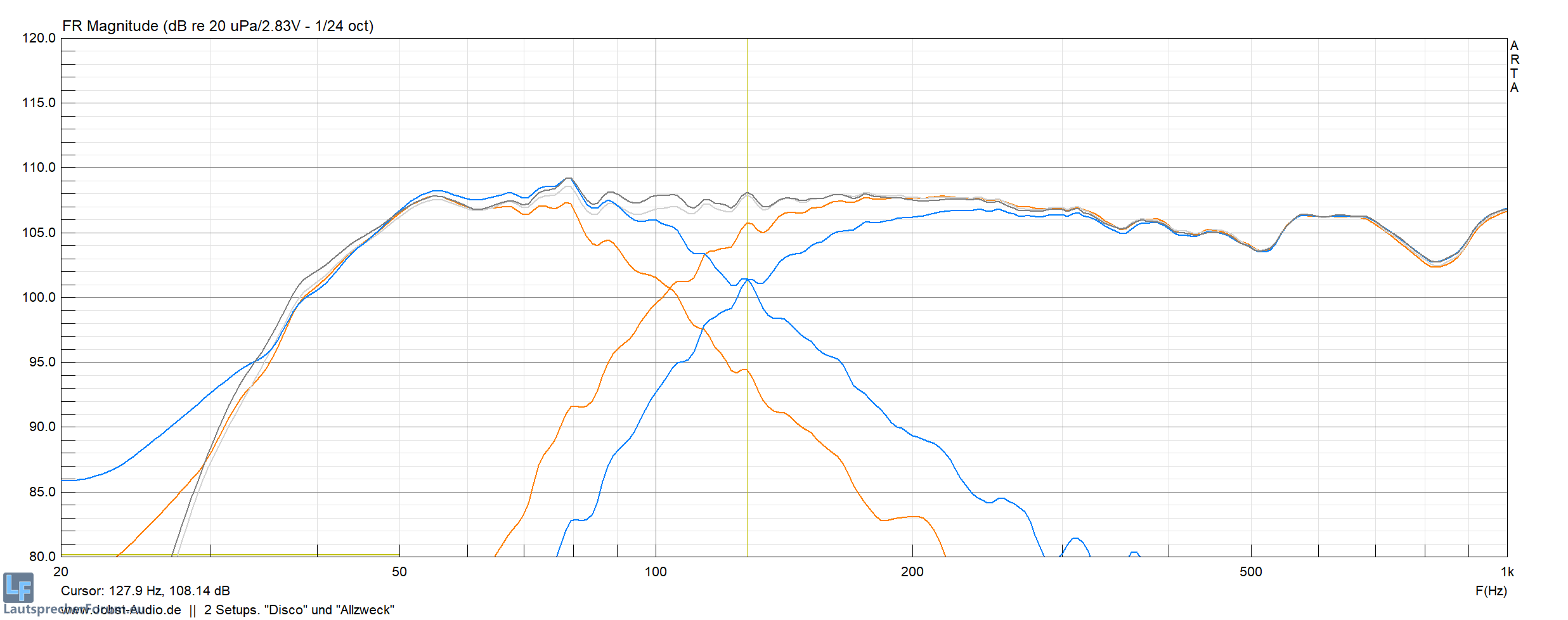 Elektrisch wurden die Filter hier bei 88Hz But24 Sub und bei Bessel 12 180Hz gesetzt.