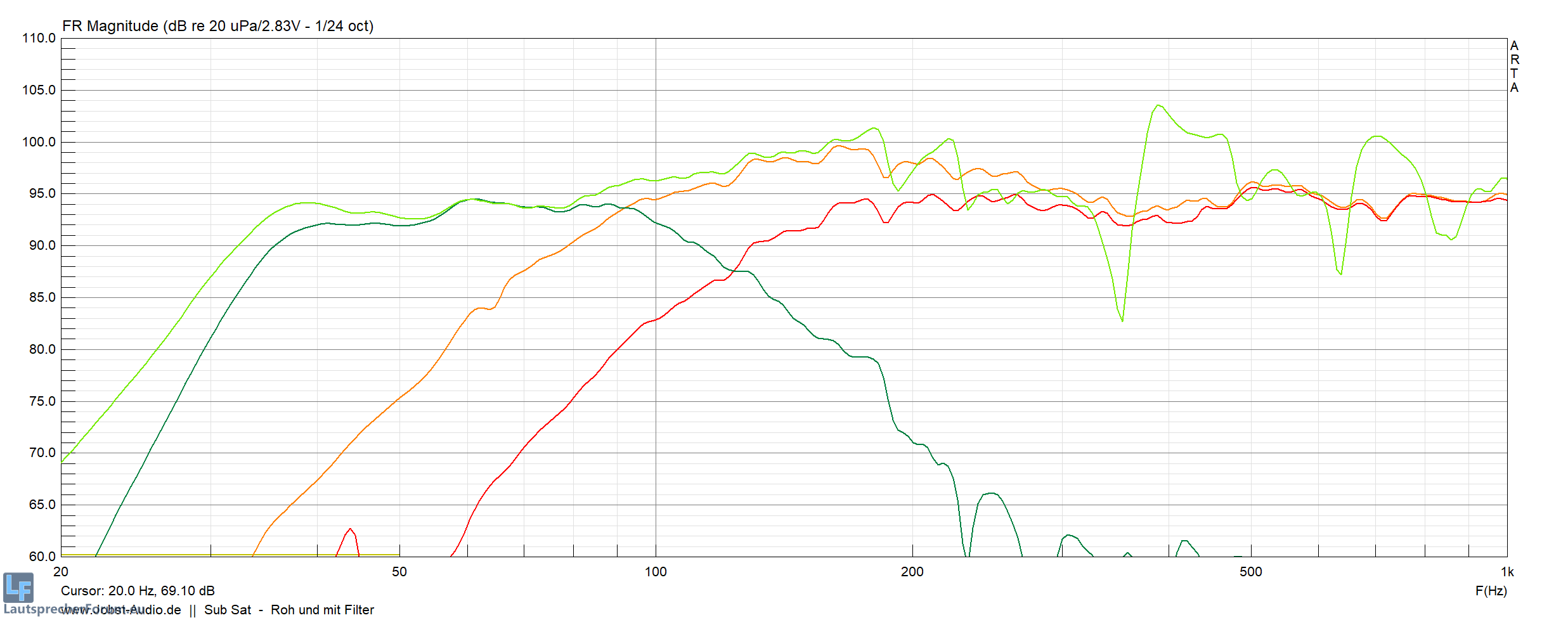 Elektrisch wurden die Filter hier bei 88Hz But24 Sub und bei Bessel 12 180Hz gesetzt.