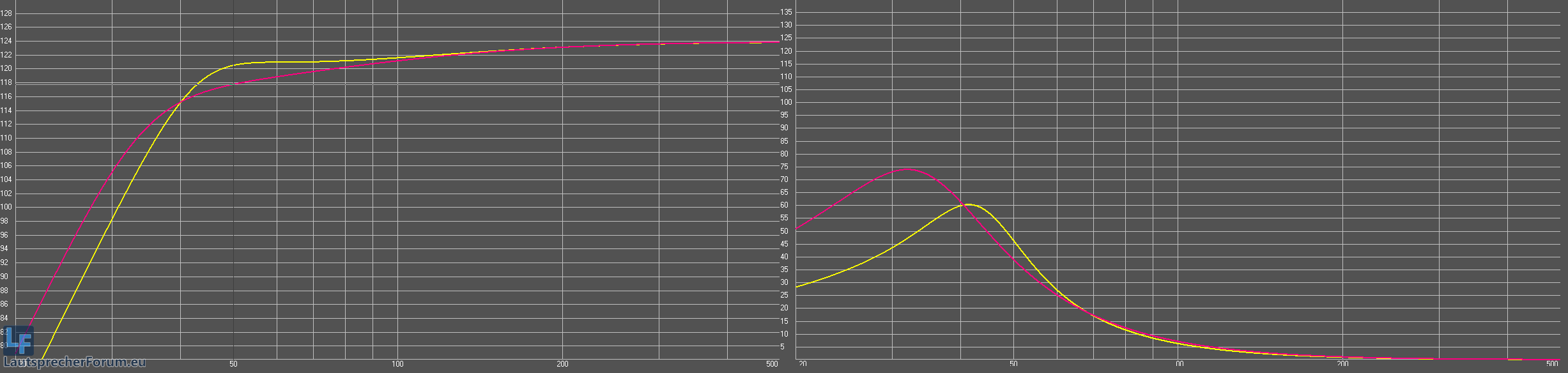 Hier mal die Simu von MaxSPL (Inkl. jeweils passendem Hochpass) und Portspeed.