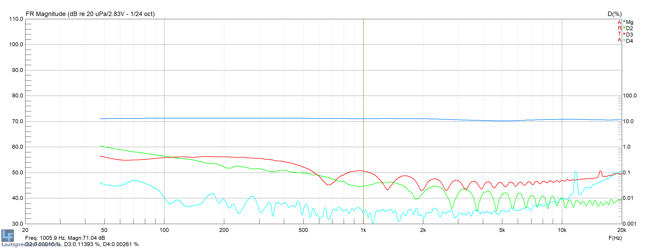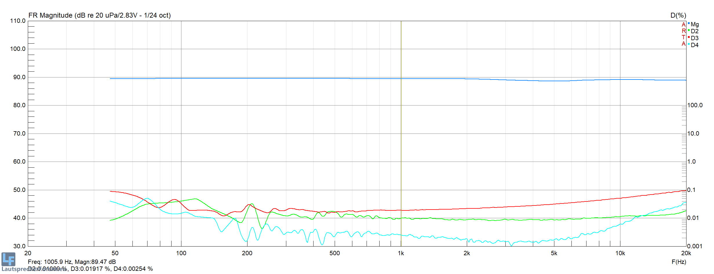 | K3 Klirr in % | @ 1000Hz | @ 500Hz | @ 100Hz |