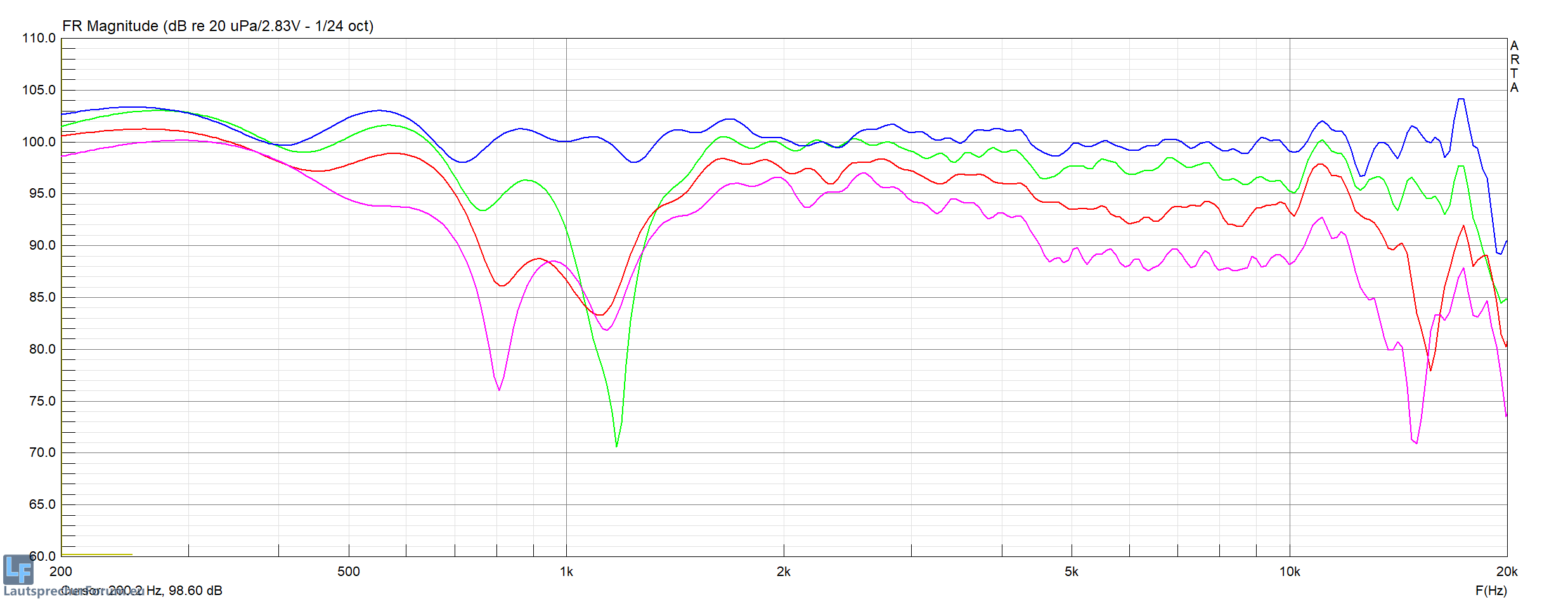 (*Ich habe hier kein Scaling betrieben, ganz links sieht man, dass die Verläufe um 0,5-1dB nach oben korrigiert werden müssten)