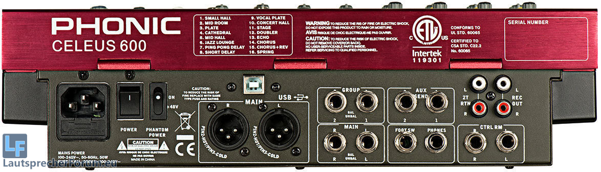 Zudem hat die Kiste für's Geld sogar ein FX an Board, und 2 Kombibuchsen als Kanal 1/2, die due z.B. für Mics nutzen kannst und sogar als Line-In,