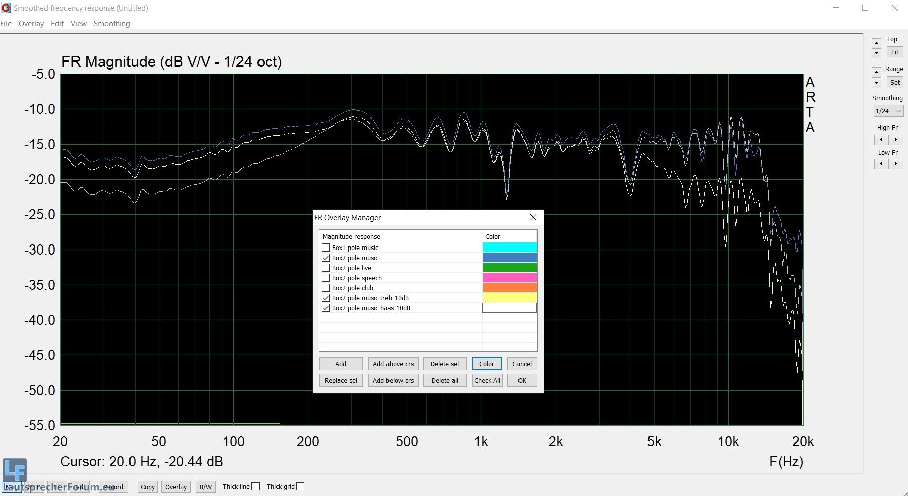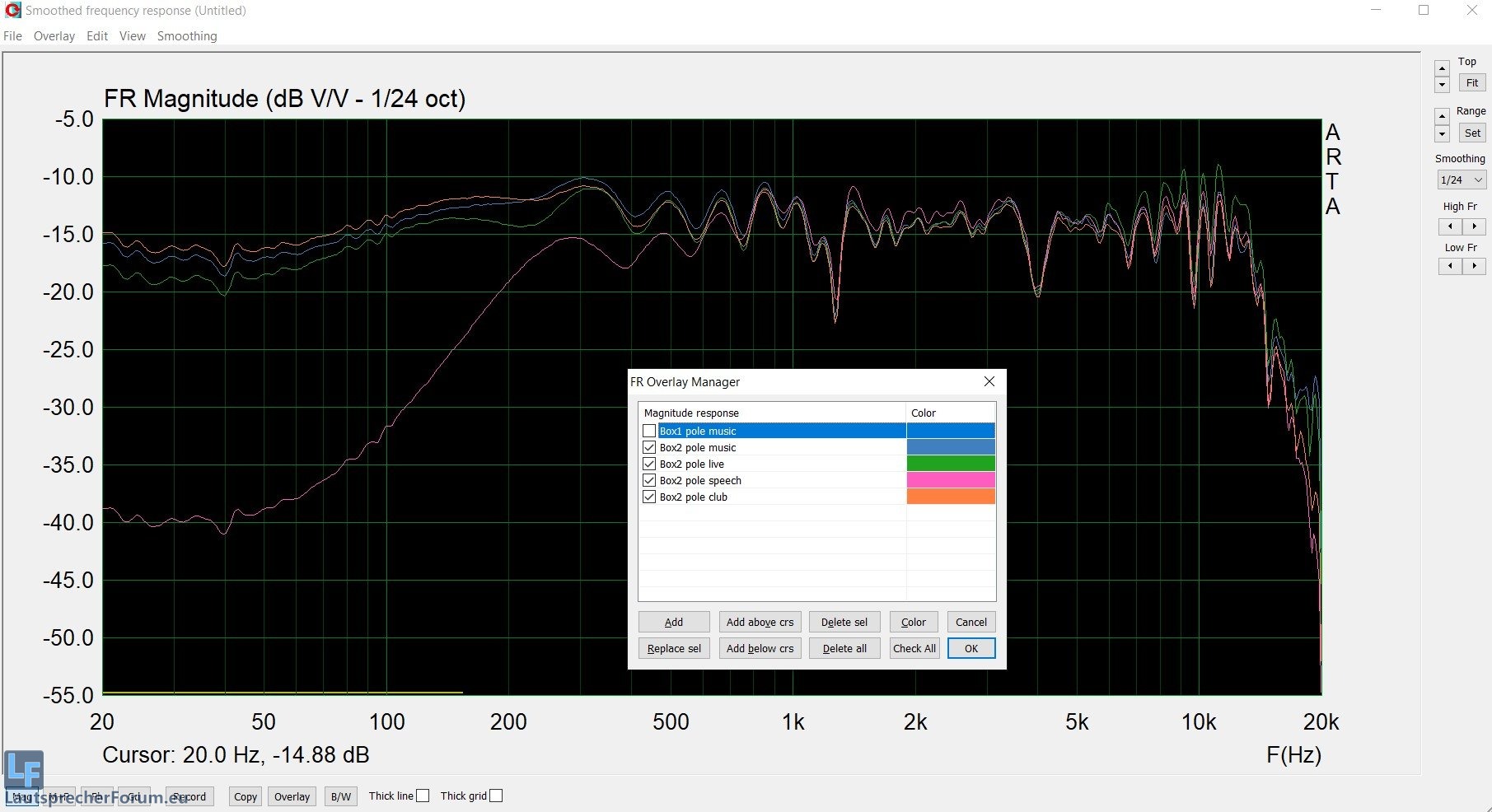 Was den Bass angeht (Monitor usw.) wäre es sinniger die Box Groundplane zu vermessen, damit du nur den reinen Bassbereich sauber betrachten kannst.