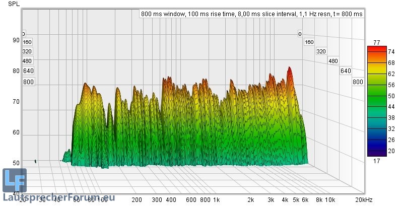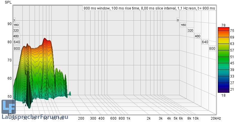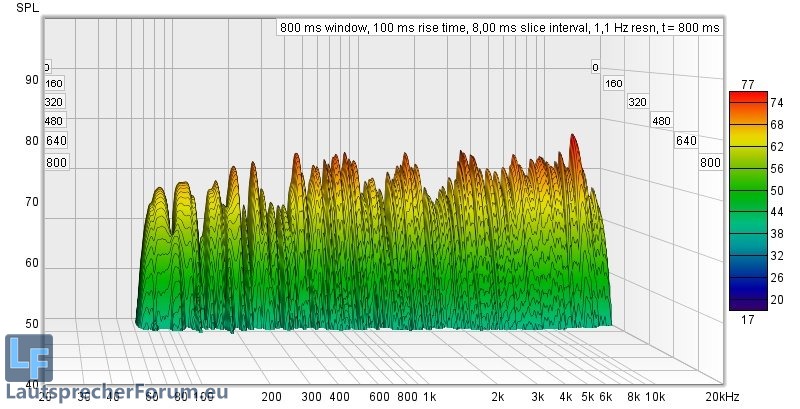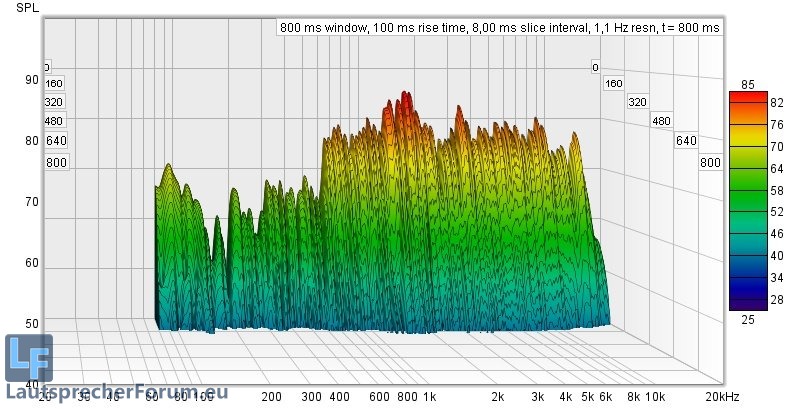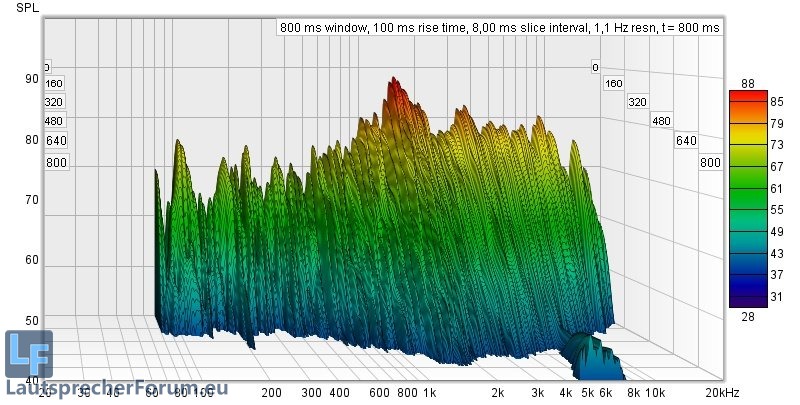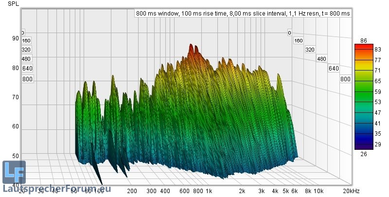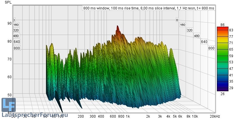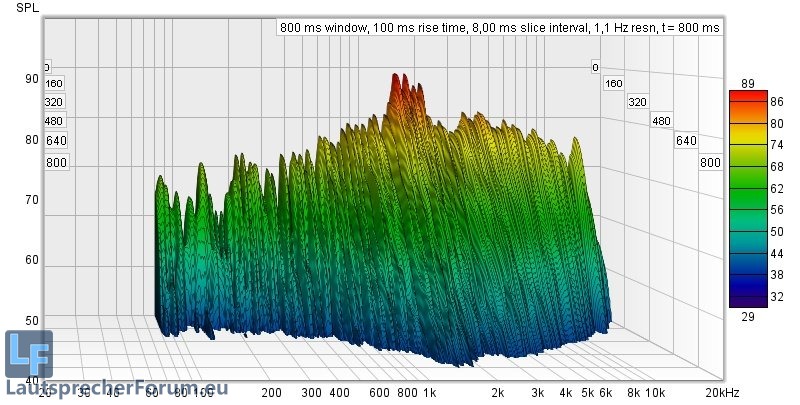 Hier ist zu sehen dass Moden recht gering ausgeprägt sind, lediglich die Nachhallzeiten versauen die Freude am ernsthaften Musikhören deutlich.