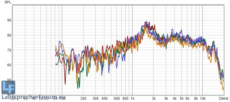 Um die Thematik besser einschätzen zu können habe ich am Wochenende von jeder Box eine Rohmessung (ohne EQ & Filter) an vielen Messpunkten vorgenommen und an vier relevanten Messpunkten dokumentiert.