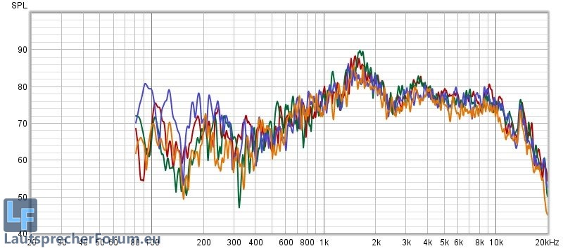 Wie man erwarten kann habe ich ein Problem mit Wand- und Deckenreflektionen bei den Topteilen. Alles klingt im Raum sehr harsch - "S" und "Sch" klingen in der Sprachwiedergabe extrem schrill, E-Gitarren können im Extremfall sogar nerven. Zusammengefasst für die Mitten und Höhen eine sehr undefinierte, räumlich verzerrte Auflösung ohne Details.