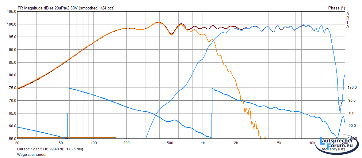 Vom Übergang Mid-Hi hab ich leider keine Messung gespeichert, hier war die Phase aber auch ab min. 600Hz bis 2,5kHz gleich.