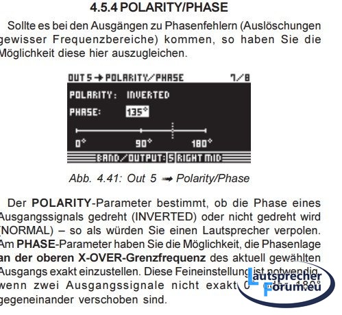 Beim DCX kann man ja sogar direkt die Phase einstellen. Aus dem manual:
